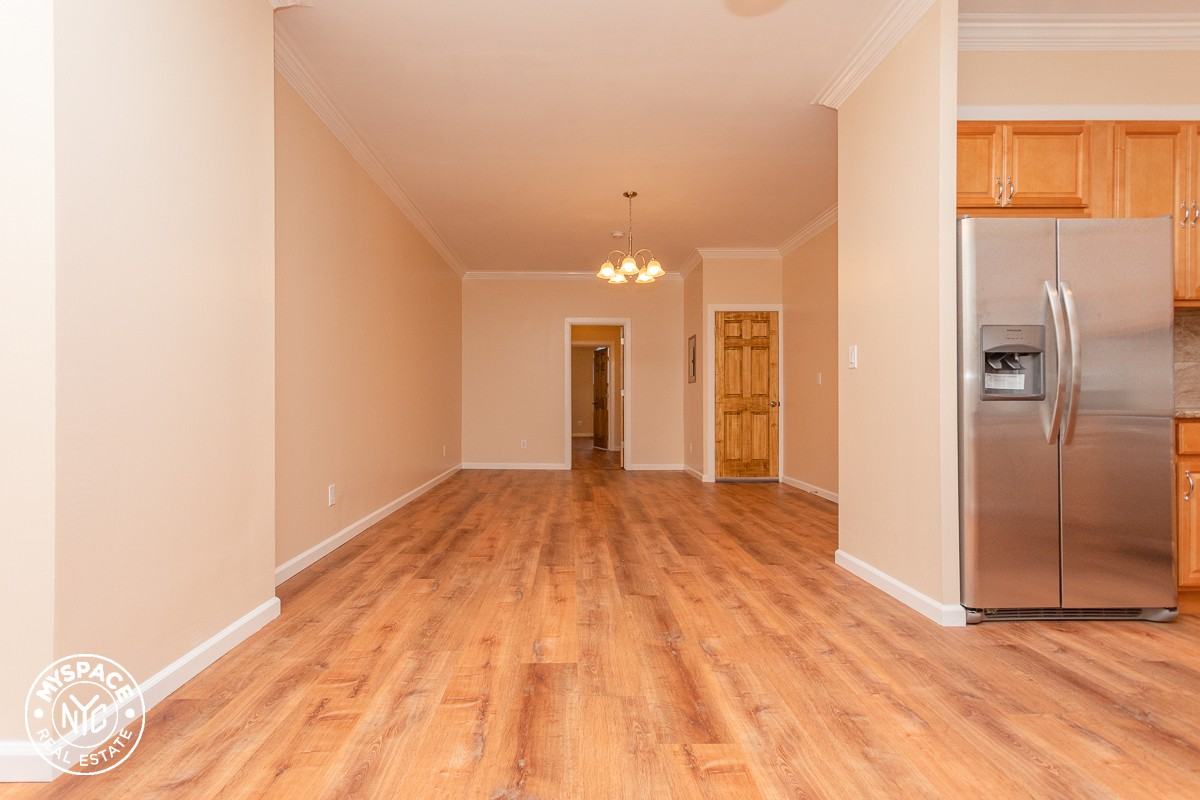 Heat and hot water included No pets. Newly renovated two bedroom on the border or Ridgewood and Glenwood. This extra sunny floor-through residence is a complete renovation. Brand new floors throughout, a chef's kitchen with stainless steel appliances, including a dishwasher, 5 burner stove, and double wide fridge. The enormous living area has room for both a dining table and a large living/entertainment space. Large bedrooms feature custom-built cabinets, large domed windows, high ceilings, and separate entrances for the railroad layout. Located on a quiet tree lined street within close proximity to transportation. Laundry on block Supermarket stop and shop