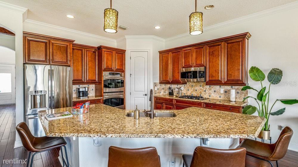 Price Reduced!! This one-of-a-kind custom estate is located in the private gated golf course community of Reunion Resort! This exquisite and pristine sprawling furnished two-story home has a separate detached in-law suite newly renovated. Offering over 3,100 sqft, 8ft doors, 16" tile flooring, crown molding, french doors that open to porches & balconies that overlooks the World-Class Arnold Palmer designed golf course with a view of multiple holes of golf, heated pool with spa, courtyard swimming pool and nightly Disney Firework Views!! The in-law suite features 1 Bed and 1.5 Bath. The main house has 3 bedrooms, 3 bathrooms. Each Bedroom has private bath. Reunion is a high-end, 2,300 acre resort community with distinctive custom homes, the finest golf courses (Palmer, Watson and Nicklaus), restaurants, water park, 13 community pools, tennis courts and a luxurious day spa. With the ease of access to I-4 and 429, travel time to all of Central Florida is drastically reduced, including the Gulf Coast and Space Coast. This home is great for year-around living, investment, short-term rental or as a vacation paradise. HOA fees include lawn care, irrigation, pest control inside and out, pool care, 6 HD cable boxes, 100 mbps internet, 24-hour security guarded gate and patrol, gated entry and much more for easy living! Don't miss this great opportunity! No Pets Allowed