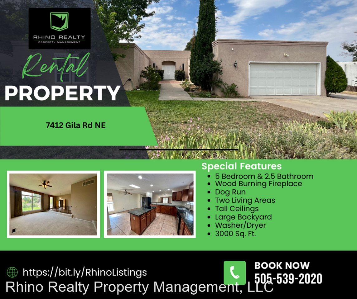 Spacious 5 Bedroom 2.5 Bathroom Located in Bear Canyon! - This 5 bedroom 2.5 bathroom home in the Bear Canyon features tall ceilings, large windows, two living areas, a large kitchen with a great amount of cabinet space, wood burning fireplace, beautifully landscaped backyard with a dog run, washer and dryer and much more for your enjoyment. Nearby is, Naan & Dosa Indian Cuisine, Nothing Bundt Cakes, 5 Star Burgers, Whole Foods Market, Arroyo Del Oso Golf Course, Mrs. Sprinkles Ice Cream and so much more. In school district of, Sandia High School, Madison Middle School & Osuna Middle School. Please call 505-539-2020 to schedule a viewing! Or press the "Schedule a Showing" button on the property page! Utilities: Resident is responsible for all utilities. PNM & NM Gas in resident's name. Resident pays water on portal. Pet Policy: No Cats Small dogs up to 30lbs $500 Pet Fee, nonrefundable Limit 2 pets Vehicle/Parking Policy: Limit 2 Vehicle Not assigned Please call 505-539-2020 to schedule a viewing! Or press the "Schedule a Showing" button on the property page! No Cats Allowed