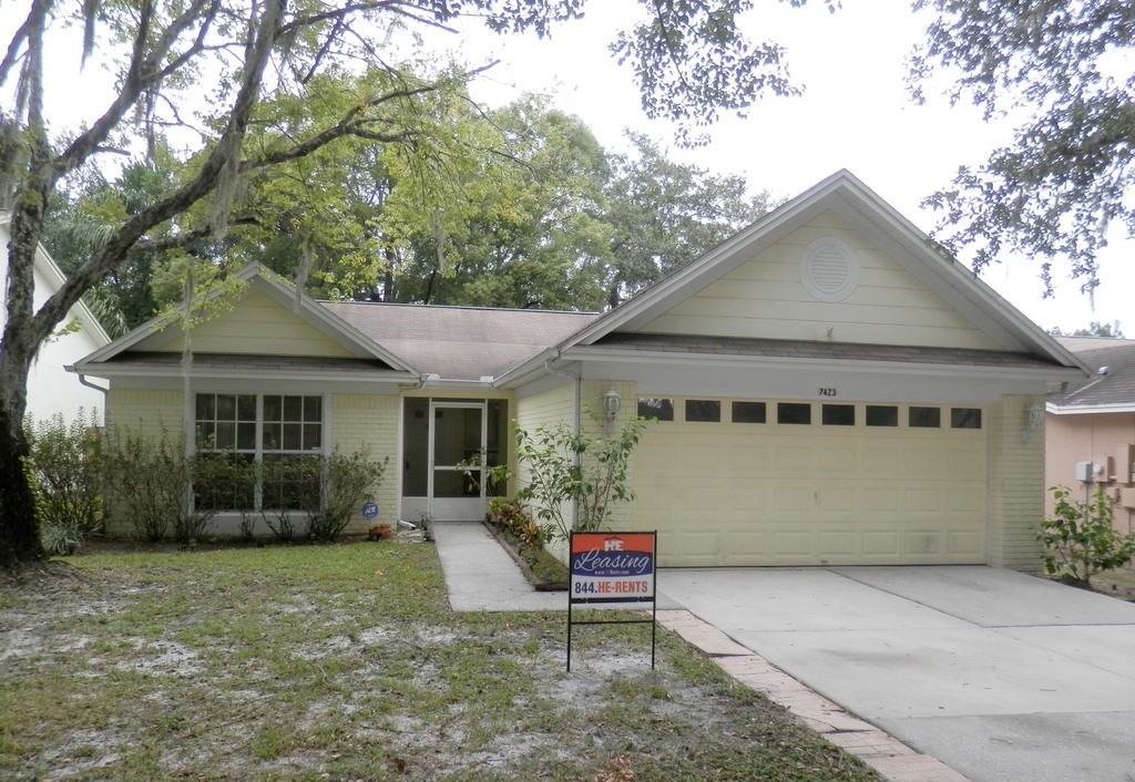 Beautiful 3 bedroom 2 bath home with a 2 car garage and a FENCED REAR YARD in desirable Temple Terrace. This freshly painted home features a screened front porch and a large screened rear patio allowing fresh air to circulate throughout the home. Ceiling fans are located in all the bedrooms for additional comfort. Split floor-plan home with vaulted ceilings. Pet Friendly with dogie doors - quiet neighborhood - great schools!