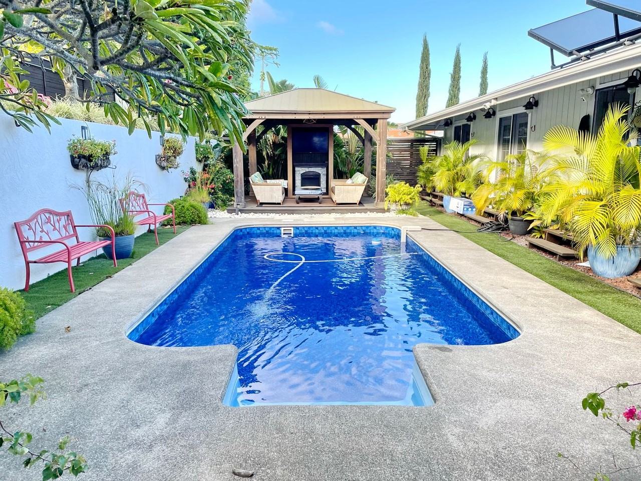 This adequately furnished and well maintained 3 bedroom 2 bathroom upstairs unit is available for the summer months as a seasonal rental. Enjoy captivating bi-coastal views of the Northshore and South shore from many areas of the home and mountain views of Haleakala as you look over the expansive central valley. Notable features: private access to the pool via French doors from all 3 bedrooms, upgraded bathrooms, upgraded kitchen, granite countertops, white shaker cabinets, stainless steel appliances, new washer and dryer, separate beverage fridge and wine fridge, tropical landscaping, pool with 2 cabanas, and 3 fireplaces- located in the main living room, the master bedroom and in the backyard pool cabana. The backyard pool area is amazing for relaxing or entertaining encompassed by a tropical and peaceful terraced garden with an array of fruit trees. Wailuku Heights is a prominent neighborhood that sits on the central valley side of the West Maui Mountains at around 1000 feet of elevation. Centrally located to easily access the airport, world class beaches, golf courses, hospital, shopping and dining. Short walk down the street to the community park that hosts a large grassy field, kids playground and adult exercise stations. Every morning you can watch the sun rise over Haleakala. Every late afternoon/early evening as the sun sets behind the 5,788 foot tall West Maui Mountains Wailuku Heights gets cast in the shadows and starts cooling off earlier than most places on the island. The downstairs ohana is currently rented to a quiet professional single person and the owners keep half the garage to store their Chevy Surburban. Included utilities are water/sewer (up to $250 a month), high speed WiFi internet & cable package, landscaping, pool service, and trash/refuse service. Tenant is responsible for electric, but electric there are ample Solar/PV panels with 3 Tesla backup batteries so historically the electric bills have been less than $50 a month. Tenant does not need to transfer any of these utilities into their name. Tenant would be responsible for obtaining and maintaining a renters insurance policy. No pets please. Available Now through 10/31/26 with some flexibility on the exact end date.