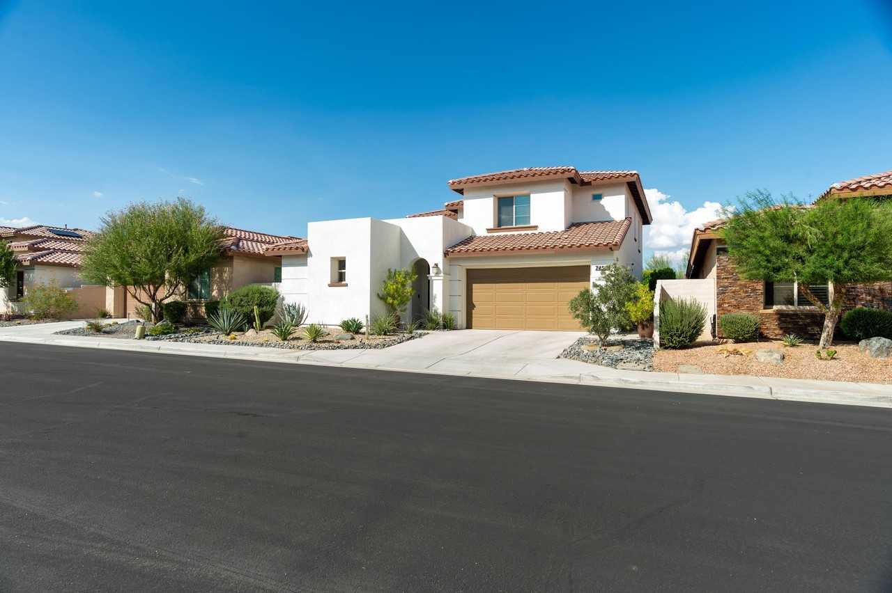 Fabulous seasonal retreat in Genesis Palm Desert now available for lease - offered for both short-term and long-term stays. Experience modern desert living at its finest in this stunning two-story home, perfectly situated on a quiet cul-de-sac within the highly sought-after gated community of Genesis in Palm Desert. Designed for comfort and style, this home features soaring 9-foot ceilings, expansive windows that fill each space with natural light, and captivating mountain and community views. Offering 4 bedrooms and 3.5 baths, including a detached casita ideal for guests, a private office, or an artist's studio, this residence effortlessly blends sophistication with livability. Interior highlights include elegant tile and wood flooring, plush Karastan carpeting, and a convenient upstairs laundry room. The spacious living room is designed for entertainment with an 85'' television, tower speakers, and fiber optic high-speed internet. Smart home technology and a state-of-the-art security system provide added ease and peace of mind. The chef's kitchen is a true showpiece, featuring sleek quartz countertops, stainless steel appliances, and a generous pantry-perfect for everyday living or hosting in style. The primary suite offers a private sanctuary with a spacious walk-in closet, a luxurious glass and tile shower, an oversized soaking tub, and a dual-sink vanity. Step outside and embrace the best of indoor/outdoor living. The serene front courtyard welcomes you with lush landscaping and a tranquil fountain, while the backyard oasis invites relaxation with mature privacy hedges, a heated saltwater pebble tech pool, and an oversized 12-foot spa-perfect for evening stargazing. Entertain effortlessly at the built-in BBQ area, complete with a sink, refrigerator, and ambient string lighting woven through the hedges for a true resort-like ambiance. Residents of Genesis Palm Desert enjoy exclusive access to two community parks, a pool, and a fitness center with BBQ and social areas-all just minutes from premier golf, tennis, pickleball, shopping, and dining. Convenient access to the I-10 ensures easy travel throughout the desert. Included in Rent: Water, pool service (2x weekly), landscaping, internet, Direct TV, pest control, and trash service. Tenant Pays: Electric and gas. Application Requirement: All tenants are required to complete a RentSpree credit application.