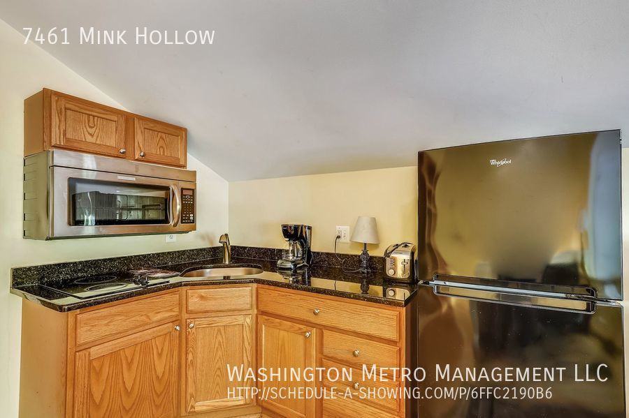 Furnished Studio Apartment Now Available!!! Private entrance with private parking space. Utilities, A/C, and wireless internet access included. Cable TV enabled. Full kitchen with microwave/convection oven, granite countertops, washer/dryer in unit, queen bed. Good commuting time to Columbia, Fort Meade, Bethesda Naval/George E. Meade medical centers, and cities in Montgomery Co. Located in a quiet country setting with nature trails, and only 10 mins from Starbucks, IHOP, and Panera. No Smoking and No Pets