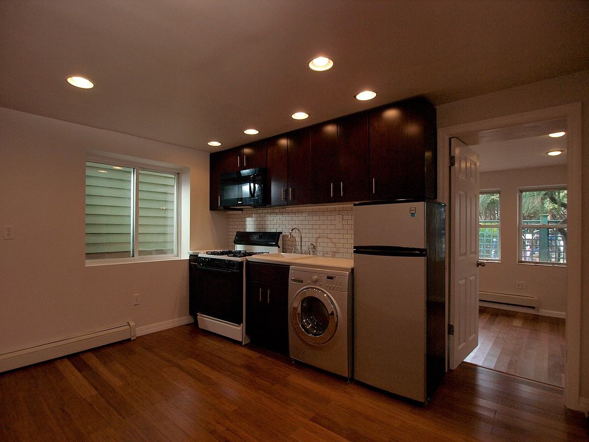 I have a two room, 350 sq. ft. studio apartment which has just been gut renovated available for rent. It is located in Stapleton, Staten Island which is just south of the Ferry. It is a 25 minute walk, an 8 minute drive / bus / Staten Island Railway ride, or 10 minute bike ride to the Ferry. The apartment is on the first floor of our Victorian home on a beautiful historic street called Harrison Street. It has an eat in kitchen with a washer/dryer unit, a full bathroom with a bathtub, and a bedroom. There is a large closet in the entrance hall and a smaller closet in the bedroom. We used zero VOC paint throughout and environmentally friendly bamboo floors and cabinets. There is a garden in the back that is shared with us and the apartment is filled with light. We would like a non-smoker and pets are upon approval with an added deposit. The rent is $850 per month plus $100 for utilities, which includes heat, hot water, electricity, and wifi. If more than one occupant will be residing in the apartment, then there will be an additional $75 per month fee for utilities.