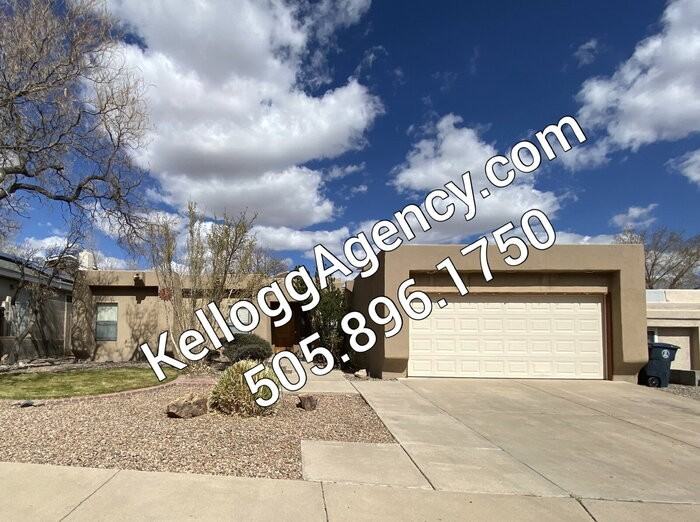 To schedule VIEWING - please register with Rently com We show our properties with an automated lockbox system. Please visit Kellogg Agency website for full details. Single story, open floor plan, 4 bedroom, 2bath. Living room with gas log fireplace and ceiling fan, open to dining room and kitchen. Dining has access to back yard covered patio. Kitchen appliances included are stainless steel, electric stove, microwave, dishwasher and garbage disposal. Great counter and cabinet space, large pantry in laundry room. Washer hook-up, dryer electric or gas hook-ups, cabinets, skylight. Spacious master bedroom with built in shelving/cabinet, adjoining sitting room, large walk-in closet, backyard access to patio. Master bathroom with double vanity, walk-in shower, cabinets and linen closet. 3 Spare bedrooms, hall linen closet, tile/laminate plank flooring, ceiling fans, window blinds, skylights. Hall bathroom with 2 sinks, walk-in shower, bathtub, two linen closets. Extended garage, remotes, side yard access from garage. Front yard landscaped. Must see back yard, landscaped, covered patio, multiple patio areas, . Refrigerated A/C. DIRECTIONS: From Paseo del Norte, South on Golf Course, West on Calle Nortina follow as it turns South to Taylor Ranch Rd, first right on Verona, left on Thornwood Dr. This property allows self guided viewing without an appointment. Contact for details.