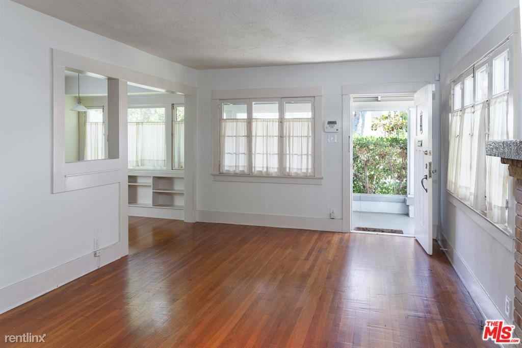 Independent living! Lovely, spacious, fully detached 1922 bungalow with almost all period details intact, part of a triplex on a quiet, tree-lined corner just 2 blocks outside the municipal boundary of West Hollywood. Meticulously maintained by the owners, who live onsite, here we have a survivor of early 20th century L.A., when nearly all Angelenos lived in detached houses, from modest 1-bedroom-sized to sprawling Pickfair. Lush plantings along Waring complement the charming hedge and gate facing Edinburgh. A wood-paneled office opens from the living room; open dining room with built-ins and a pony wall leads to the kitchen and adjacent utility room with its service entrance. Guests can access the full bath from here without going through the bedroom; and the off-street parking space for the tenant is just past the gate in the fence opposite the second entry. Mini-split heat pump for heating and cooling in the living room and the stacked washer & dryer in the utility room provide your private laundry room. Beautifully intact original tile in the primary bathroom (shower over tub) and many other period details in excellent condition. Subject to Los Angeles Rent Stabilization Ordinance. Fireplace is decorative. No pets. 091690046JP23311751 Please call 310-331-8883 **** Listing provided by Michael D. Phillips of Crosby Doe Associates, Inc. (LA State License 01721282) 310Leases. com No Pets Allowed