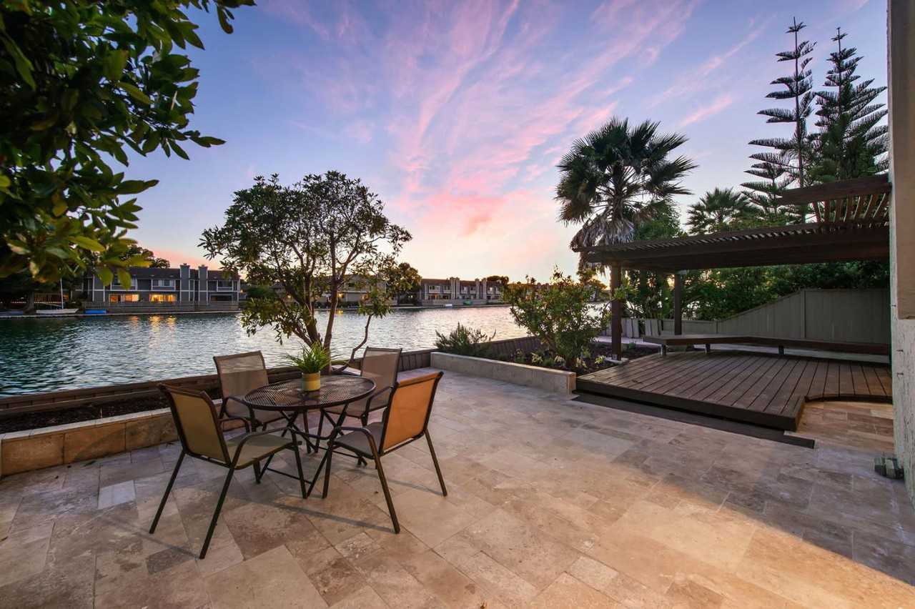 Conveniently located remodeled two-story home. Expansive living room and dining room combo offers cathedral ceilings w/ oversized windows and sliding doors opening to unobstructed wide water views. 3 bedrooms, 2 full baths. A chef's kitchen w/ two skylights, white Calacatta counter, white Carrara Bianco Marble tile and Blue Star range. Lots of cabinet space. Family room/loft on upper level. Landscaped front yard and natural stone tiled backyard for entertaining and water sports. 2 car garage. Home to delivered non-furnished. Furniture in pictures for staging purposes only!