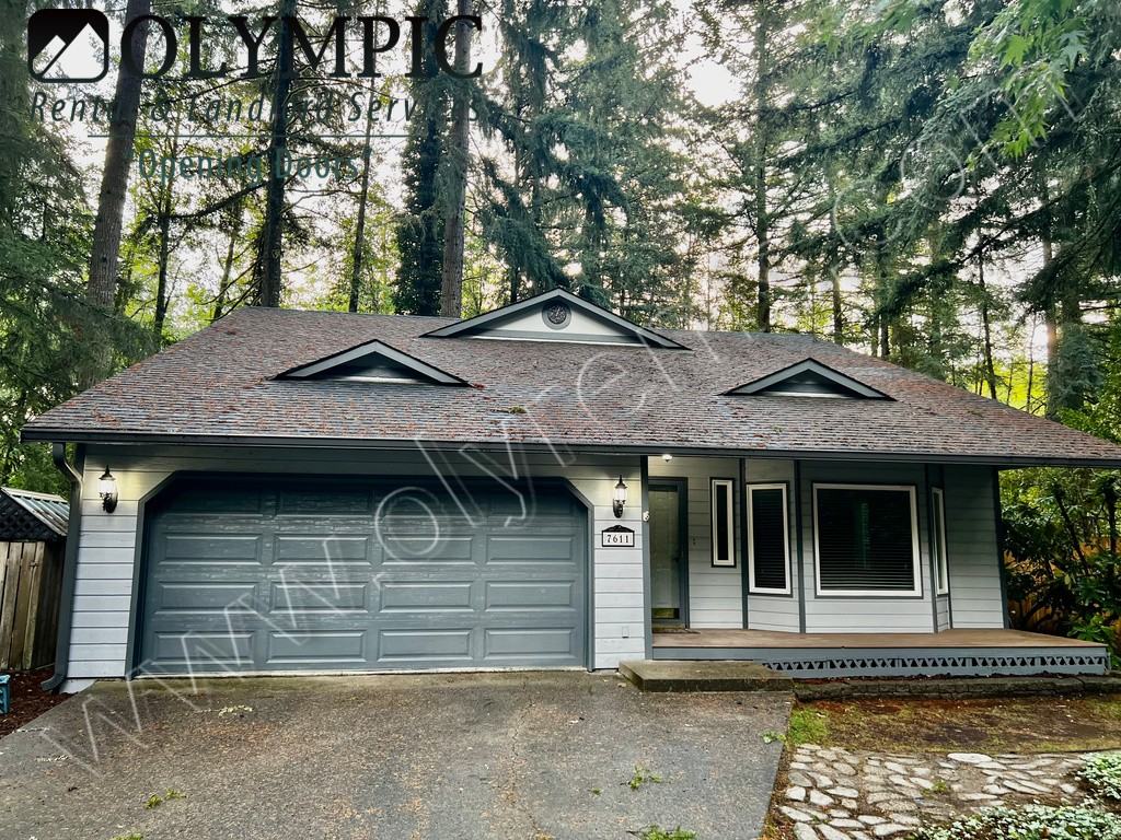 Located in Sunwood Lakes Community - Enjoy the surroundings of this 3 bedroom 2 bath home WITH AC, 1532 square feet located on a Cul-de-sac that backs into the greenbelt. Open kitchen includes new stainless-steel refrigerator, range, dishwasher and mobile island. the home feature a pellet stove in living room, vaulted ceilings with ceiling fan, Skylights, LVP flooring downstairs, covered front porch, partially covered deck in fenced backed yard with shed, greenhouse and garden beds. Washer & dryer are included. 2 car garage with remote. Large primary bedroom with dual closets & access to main bathroom upstairs. The Sunwood Lakes community includes access to the clubhouse, swimming pool, trails, and lake. No Smoking. Pets negotiable with additional rent and deposit. Thurston County.