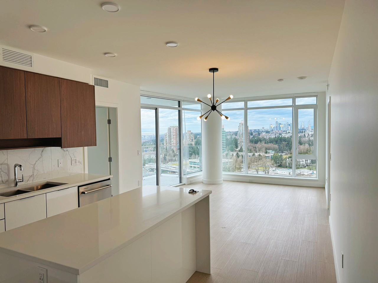 Presenting an brand new exquisite 2b2b apartment of contemporary elegance in the Azure building at 7683 Park Crescent, Burnaby. This never-before-lived-in residence on the 20th level offers a stunning view and excellent location within walking distance to Edmonds Station, supermarket and restaurants. BEST LOCATION ‼️BEST VIEW‼️BEST PRICE‼️ Key Features: - at least 6 months fixed term lease with month-to-month option thereafter. - 2 spacious bedrooms and 2 bathrooms. - Total Square Footage: 900 sq ft - Laminated flooring with carpet in the bedrooms. - Brand new, never lived in, with modern finishes. - Conveniently located in Edmonds, South Burnaby. Amenities and Highlights: - Stunning views. - Year-round comfort with heating and cooling. - Open-concept living space with ample natural light. - High-end finishes and modern fixtures. - Gourmet kitchen featuring a gas cooktop. - Balcony with an open view. - Master suite with walk-through closet and en-suite bathroom. - Full-size laundry facilities. Building Amenities: - Gym - Party Room - Yoga Studio Lease Details: - Rent: $3350/month plus utilities & internet. - Availability: Starting Feb 1. - Utilities: Heat, hot water, and gas included in rent. - Parking: 1 space | 1 storage unit. - Pets allowed. Please introduce yourself along with the number of occupants and your relationship. Credit check & Reference needed Tenant insurance is required.