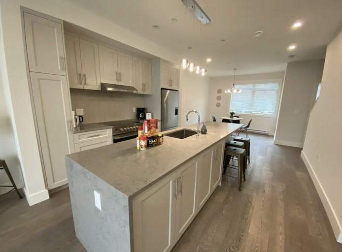 Discover the perfect blend of comfort and convenience in this charming 3-bedroom townhouse, ideally situated in the vibrant heart of Richmond. This inviting home features a spacious and modern design, with large windows welcoming natural light into every corner. Each of the three bedrooms is beautifully appointed, offering a serene retreat for rest and relaxation. The house boasts a well-equipped kitchen, complete with top-of-the-line appliances and ample storage, perfect for culinary enthusiasts. The living area, with its cozy ambiance, is ideal for family gatherings or quiet evenings. Enjoy the added convenience of included water and hydro utilities, ensuring a hassle-free living experience. Nestled in a friendly neighborhood, this home is just moments away from local amenities, parks, and excellent schools, making it an ideal choice for families or professionals seeking a blend of urban accessibility and residential tranquility. Embrace a lifestyle of comfort and ease in this delightful Richmond residence.