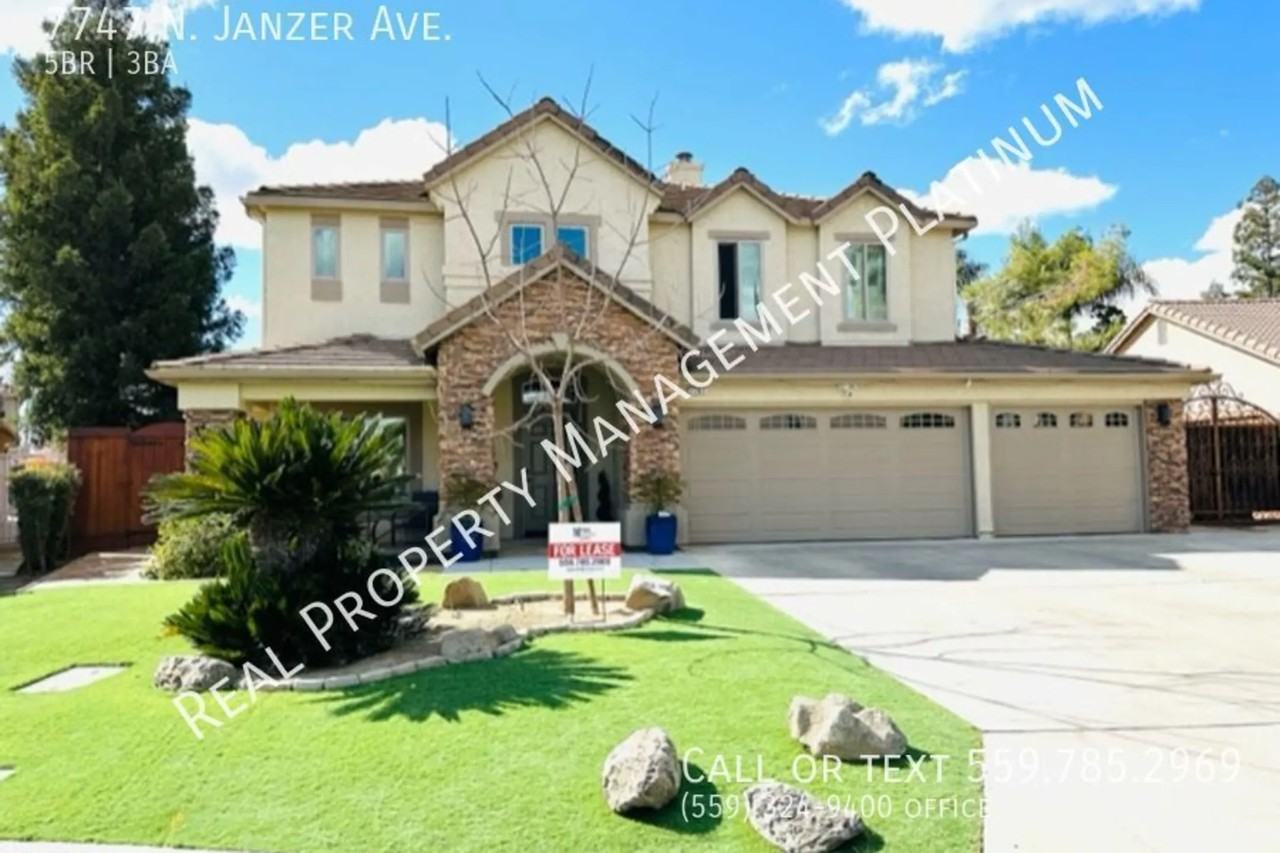 SCHEDULE A SHOWING ONLINE AT: http showmojo com lre b4ad54509b CLICK to schedule a showing: https showmojo com l b4ad54509bLovely 5 bedroom, 3 bathroom home with marble floors. Fresno Bluffs area. Two story home 2674 sq. ft., and built in 2002. Enjoy the many upgrades. Energy efficient home, triple pane windows & over 40 solar panels. Kitchen has chiseled edge granite, center island, gas range, stainless appliances, custom lighting. Breakfast bar opens to the great room with gas fireplace. Two separate living areas. Front living room and dining area has vaulted ceiling, natural light. Marble floors on the first floor & staircase, second story has wood flooring. Main bedroom has wall of windows, en suite bathroom with custom vanities, soaking tub, and relaxing shower, with huge custom wardrobe closet. Loft and 3 additional bedrooms upstairs. Bathrooms have quartz counters, custom tile. One bedroom & custom bath located downstairs. Laundry has utility sink, washer & dryer provided and leads to the attached 3 car garage. Backyard has a large covered patio and artificial turf lawn area. Tenant responsible for yard care. No pets. No smoking. Credit score above 700 required. Located east of Riverside Golf course, in the Bluff neighborhood. (north of Alluvial, west of Milburn).Call (559) 785-2969 to schedule a showing or (559) 324-9400 to contact the office. DRE# 01901101. All information is deemed reliable but not guaranteed and is subject to change. Non SmokingRenter's Insurance Required