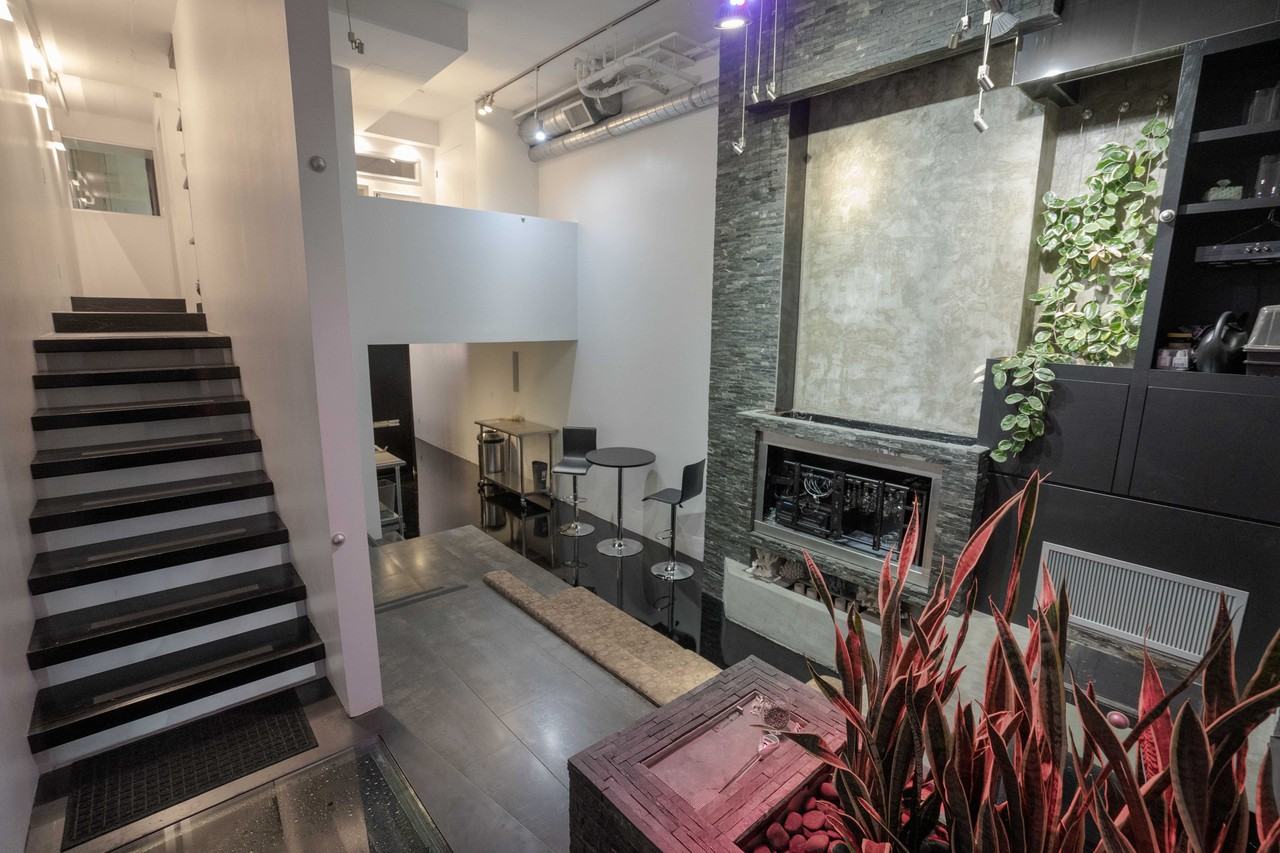 Contact info: Jennifer Wu 858-869-9688 Fully furnished move-in ready sophisticated work/live loft. Enjoy this urban retreat in the heart of downtown San Diego. An unique contemporary work/live loft design built as an artist studio retreat and gallery at the heart of downtown San Diego. Step into your own urban sanctuary through direct street access on 7th Ave (much quieter than 6th Ave). Feel the voluminous open zen space with 16ft ceiling while standing on an indoor koi pond. Take a couple steps and view down at prized imported Japanese koi standing on 1 inch thick engineered tempered glass. Look at the koi eye to eye in the inverted aquarium that allows the koi to swim 3-4 feet above the pond water level. Custom built in sofa and a 55 inch flat screen TV. Swivel the TV to access a hidden bar for a glass of wine, or enjoy a cappuccino from the built-in Miele espresso maker and refrigerator in the kitchen. Take a bath in the spa-like downstairs bathroom with a jetted tub while watching your favorite shows on a mounted 42 inch flat screen or relax with just candle light. Convenient stacked stainless steel washer and dryer. Walk up backlit solid 4 inch Californian redwood treads to the loft. A collection of coral specimens adorns the top of the stairs and office. Relax your eyes with extended line of sight across the loft and onto the street from the open office. The office area can be equipped with a Mac and or PC. Secured WiFi throughout. The cozy bedroom has a modern queen platform bed, large drawers and 55 inch wall mounted TV. Right and left reading lights at the head of the bed. Have a rainfall shower with or without multiple body jets in the half inch glass inclosed shower in the masters bath. Security fob access at all common areas including 1 assigned parking space in the garage directly across the street from the Andaz Hotel. One assigned parking space. Common BBQ area in the mezzanine and gym on the 1st floor. Walk to all the restaurants, shops and entertainment the Gaslamp and East Village has to offer including Horton Plaza, the new Library, the convention center and Petco Park. Take the ferry to Coronado island for world class beaches. Take the Coaster railway from the Santa Fe Depot up the California coast. Convenient travel with just a 5-10 min car ride to the San Diego International Airport. Office calDRE: 02065836