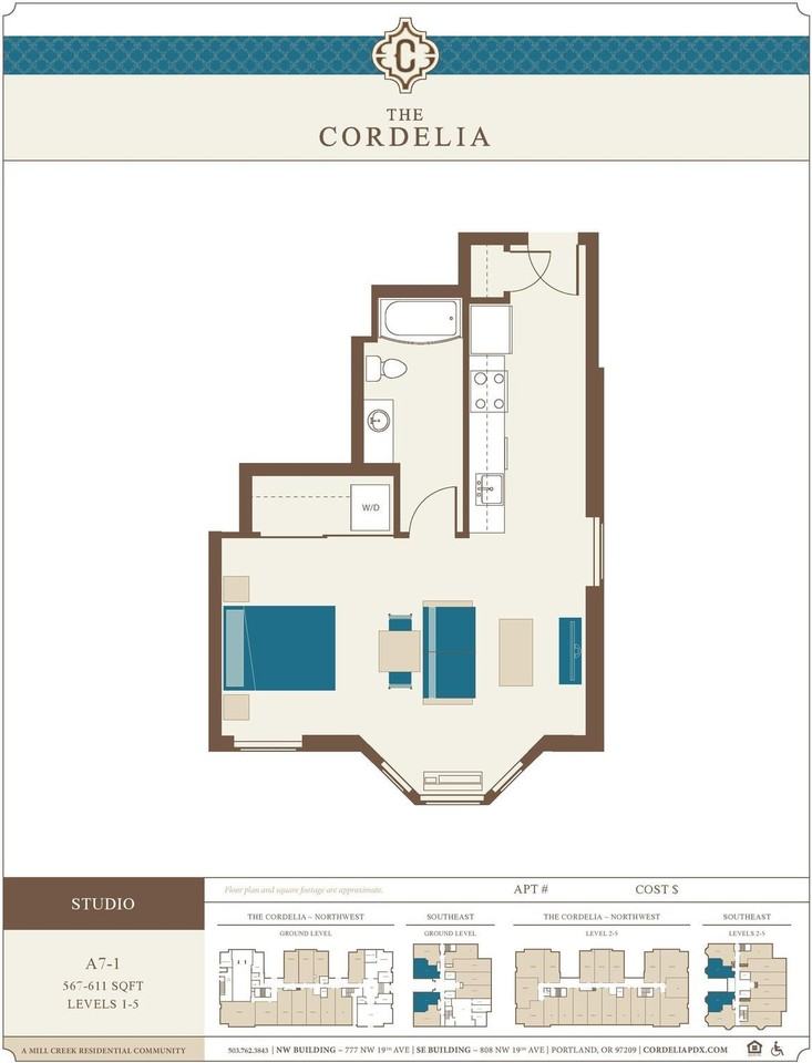 Studio apartments at 777 Nw 19th Ave cost about 25% more than the average rent price for studios in Northwest District.