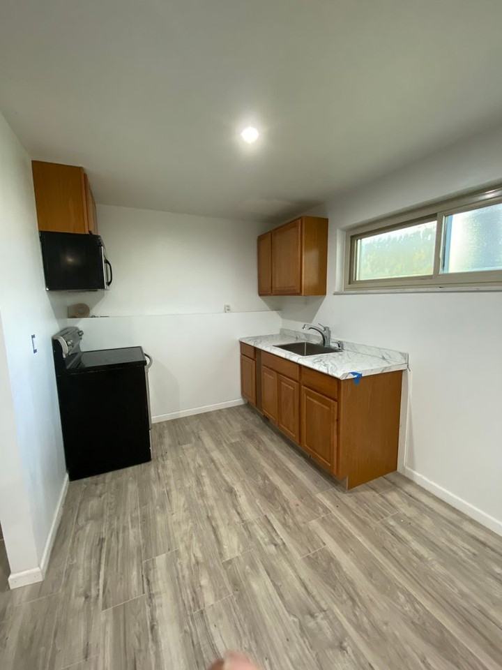 This spacious, fully renovated basement apartment offers 957 sq. ft. of modern living space. The one-bedroom, one-bathroom layout is perfect for those seeking comfort and privacy. The apartment features sleek, updated finishes, including contemporary flooring and fixtures throughout. The bedroom is generously sized, offering ample space for furniture and storage, while the bathroom boasts modern amenities and stylish design. With a private entrance, you can enjoy easy and independent access, making this basement feel like your personal haven. Despite being a basement unit, the apartment is bright and airy, with thoughtful updates that maximize light and space. Perfect for someone looking for a spacious yet affordable living option!