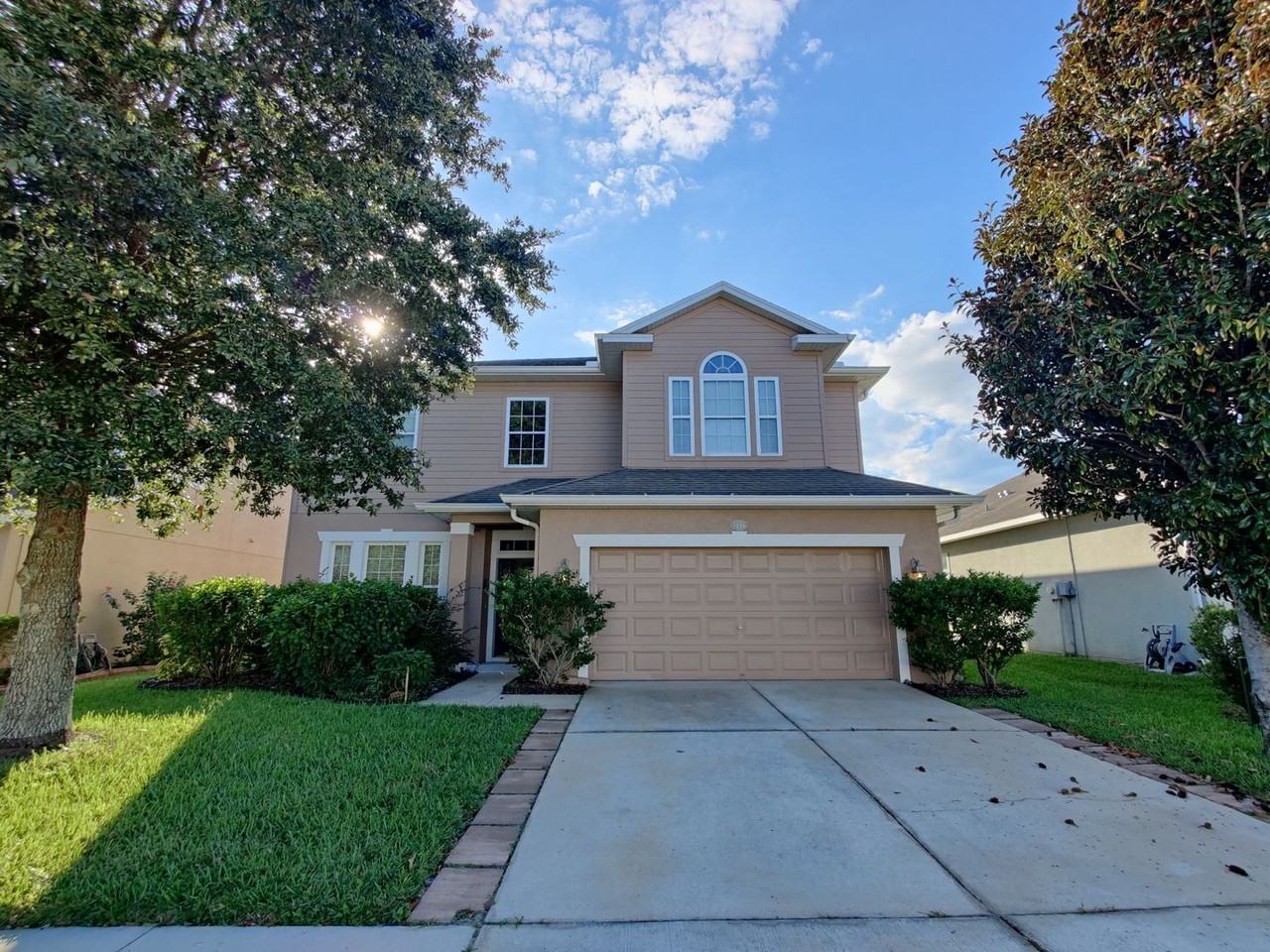 Beautiful water view house for rent! 2 story, 2688sqft, 5 bedroom, 3.5 bathroom, 2 car garage and 2 car driveway! Welcome to this beautifully maintained home in the highly sought-after neighborhood of Palm Cove in Wesley Chapel. New vinyl plank floor, Freshly painted, New blinds, Appliances included! Located close to I-75, plenty of shopping, hospitals, and schools. This 5 bedroom, 3.5 bedroom house boasts a Large Master Bedroom overlooking the expansive water view, an en-suite master bathroom with a garden tub and a separate shower stall and a walk-in closet. The separate dining area, beautiful cabinets with crown molding, large family room, and office/craft room are just a few of the other gorgeous features of the home. Rain gutters have been installed on the entire home. This home has plenty of storage space inside and extra space in the garage with the laundry room upstairs. The backyard features a fabulous water view. The Palm Cove neighborhood amenities include a pool, dog parks, basketball court, and playgrounds. Tenant pays water, electricity, Internet, trash service and maintains the lawn. Owner pays HOA. Pet policy: Each pet applies a $300 non-refundable fee.