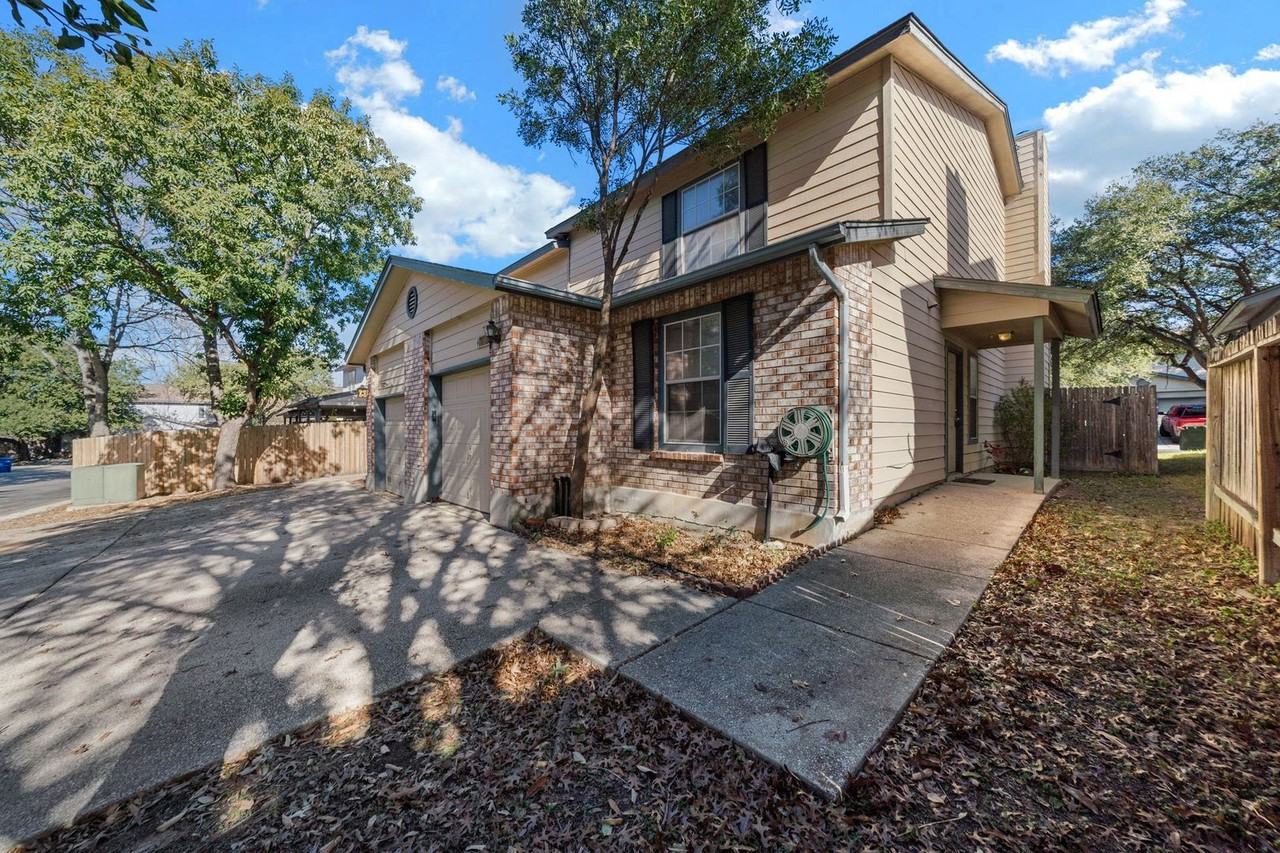 Move-in ready and full of charm, this 3-bedroom, 2.5-bath townhome in the gated Village at Rustic community is ready to impress. Freshly painted with new flooring, the open floor plan flows seamlessly, highlighted by a cozy wood-burning fireplace in the living room. The spacious kitchen comes complete with all appliances, ample cabinetry, and generous counter space, perfect for everyday cooking or hosting gatherings. The master suite features an oversized closet for fashion enthusiasts, along with a double vanity and tub/shower combo in the en suite bath. A secondary bedroom is conveniently located on the first floor, offering flexibility for guests or an office. Enjoy the covered patio and private fenced backyard, ideal for relaxing or entertaining. With easy access to major highways, the Medical Center, USAA, UTSA, Fiesta Texas, shopping, and dining, this home offers both comfort and convenience.
