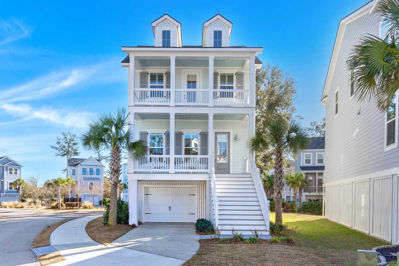 Welcome to The Island at Governor's Cay, a stunning new neighborhood that boasts mature trees and offers breathtaking marshfront and waterfront views. At 783 Forrest Drive, you'll find an exemplary showcase of island living. This home features charming double front porches and a cozy screened porch at the back. It stands elevated, boasting extensive upgrades including an oversized two-car garage below. A recently installed fence around the backyard ensures a secure environment, making it an ideal space for owners with children and pets, without compromising the open, airy feel of the outdoor space. Stepping inside, the entrance leads you into a welcoming family room adorned with new hard-surfaced flooring and soaring 10 ft ceilings. The main level is bathed in natural light thanks to windows on every side, enhancing the spacious feel. A fireplace adds warmth to the family room, which seamlessly transitions into a pristine all-white kitchen. The kitchen is equipped with quartz countertops, stainless steel appliances, and soft-close cabinets, and it flows into a breakfast/dining area, perfect for gatherings. Conveniently, there is also a half bathroom on the main level, adding to the home's functionality and guest comfort. Adjacent to the kitchen, the elevated screened porch provides an idyllic spot for enjoying evenings outdoors. The upper level houses a master bedroom complete with a balcony porch and an en-suite bathroom featuring double vanities and a spacious rain head shower. Additionally, this level includes a laundry room, two more bedrooms, and a full bathroom. Residents have access to exceptional amenities including a dock to an amenities island, two crabbing and fishing docks, a screened pavilion, and a floating dock ideal for water-related activities such as paddle boarding and kayaking. Conveniently, there is a kayak rack available for storing your kayak, making it easy to enjoy the water whenever the mood strikes. Adding to the allure, a brand new community pool is slated to open in June 2024, providing an exciting addition for all residents to enjoy. Situated centrally near the highway, this neighborhood offers quick access to all of Charleston. The beauty and charm of this community are best experienced in person. Schedule your showing today and discover your dream island living at The Island at Governor's Cay, now even more welcoming for families and pet owners with its new backyard fence and the anticipation of the community pool opening, alongside the enriching experience of water-related activities.