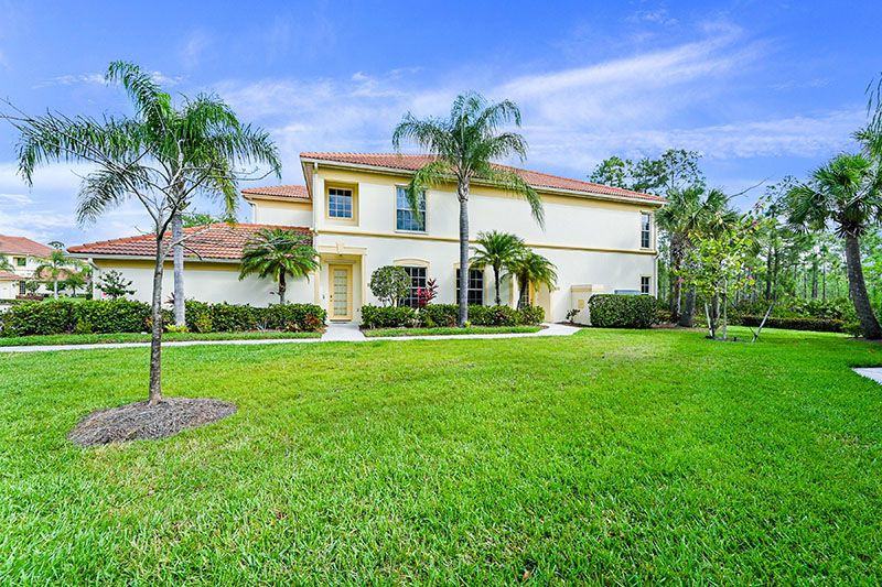 Available May 1, 2022, first floor, 2 bed, 2 bath plus den coach home in the Madison Park community of Quincy Square. This warmly decorated coach home has a large open living room with a view of the lanai and the preserves beyond. The open kitchen overlooks the living room and dining room. Off the living room is a den with TV and pull-out sofa and can be closed off for additional sleeping space or to work from home. The master bedroom has a king size bed and his and hers walk in closets. The master bath contains a walk-in shower and separate soaking tub. The guest bedroom has a queen size bed and the guest bath contain a shower tub combination. The full-size laundry room has a door to the two-car garage. The large screened in lanai has space for dining and relaxing. There is a community pool a short walk away.