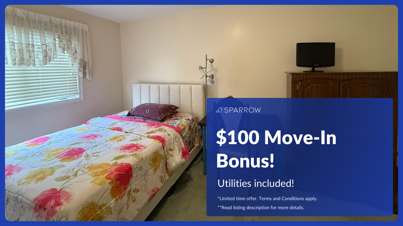 *Text me at 437 291 7980 for assistance using SparrowShare Request a tour for this private room for rent at sparrowshare. com Private room for rent in a shared house at Skylar Circle Bedroom available: 1 Furnished Bedroom A: $830 Private room with Double sized bed (Shared bathroom) Solo occupancy only Utilities included: - Heating - Washer & Dryer - Internet - Air Conditioning Shared spaces: - Bathroom - Dining Room - Kitchen - Living Room - Backyard Parking: None Minimum Rent Duration: 4 months Payment: After a tour and signing the agreement, Pay a security deposit and First month's rent before move in-date Address: Skylar Cir, Brampton, ON L6P 0Z2, Canada *For home safety precautions, Exact Address will be shared after a scheduled tour House Rules: - No Guests - No Smoking/Vaping/Cannabis - No Pets Allowed Additional Benefits: - Credit Building - Tenant Insurance Included Disclaimer: This listing has been syndicated from sparrowshare.com, including its content, rental terms, and images. Sparrow is used to verify the identity and compatibility of those interested. The advertised property is owned and/or managed by Melvin from Sparrow Living Inc.
