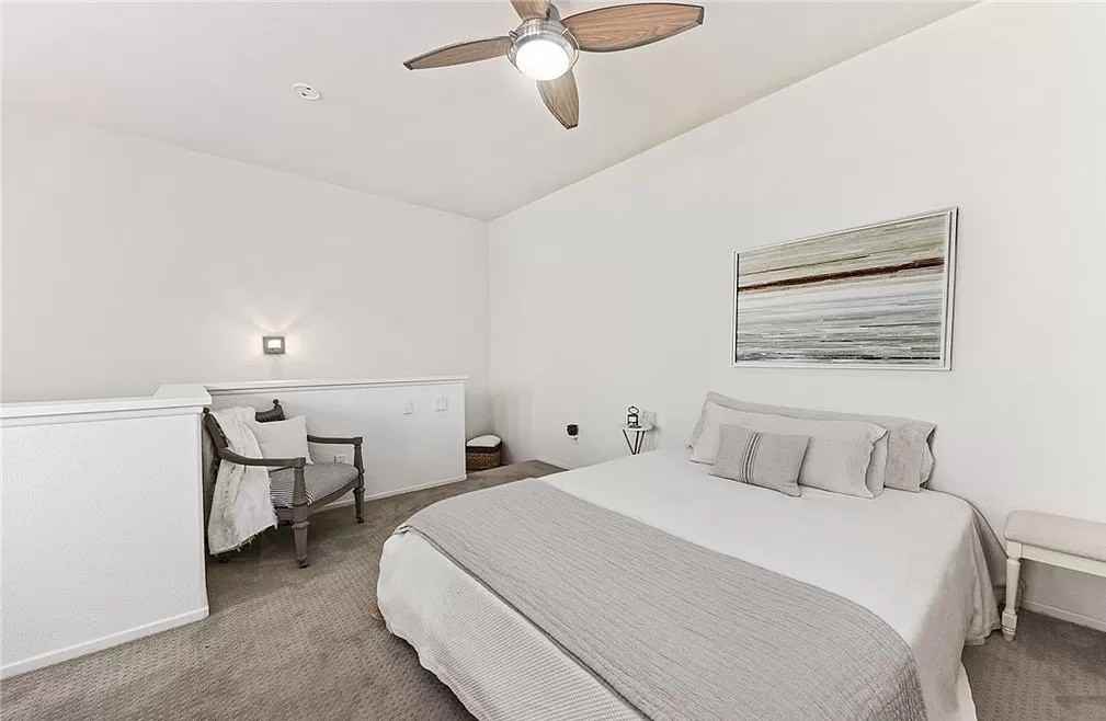 Numerous upgrades include beautiful AquaGuard Laminate Flooring, Milgard Vinyl Windows, Plantation Shutters, and Lighting throughout. The kitchen features newer GE Slate Appliances; Microwave, Dishwasher, Gas Stove, and Refrigerator plus a new garbage disposal. Cozy gas log Fireplace & Large Media Niche in Living Room. Your own spacious Balcony is located right off of the Living Room. The bathroom is upgraded with a Walk-In Marble Shower, Marble Vanity, Lighting, Faucet, and new Toilet. Bedroom Closet has been upgraded with Floor to Ceiling Elfa Custom Closet System. Desirable Inside Laundry Area is located in your own 2 Car Attached Garage which includes Whirlpool Washer and Gas Dryer,