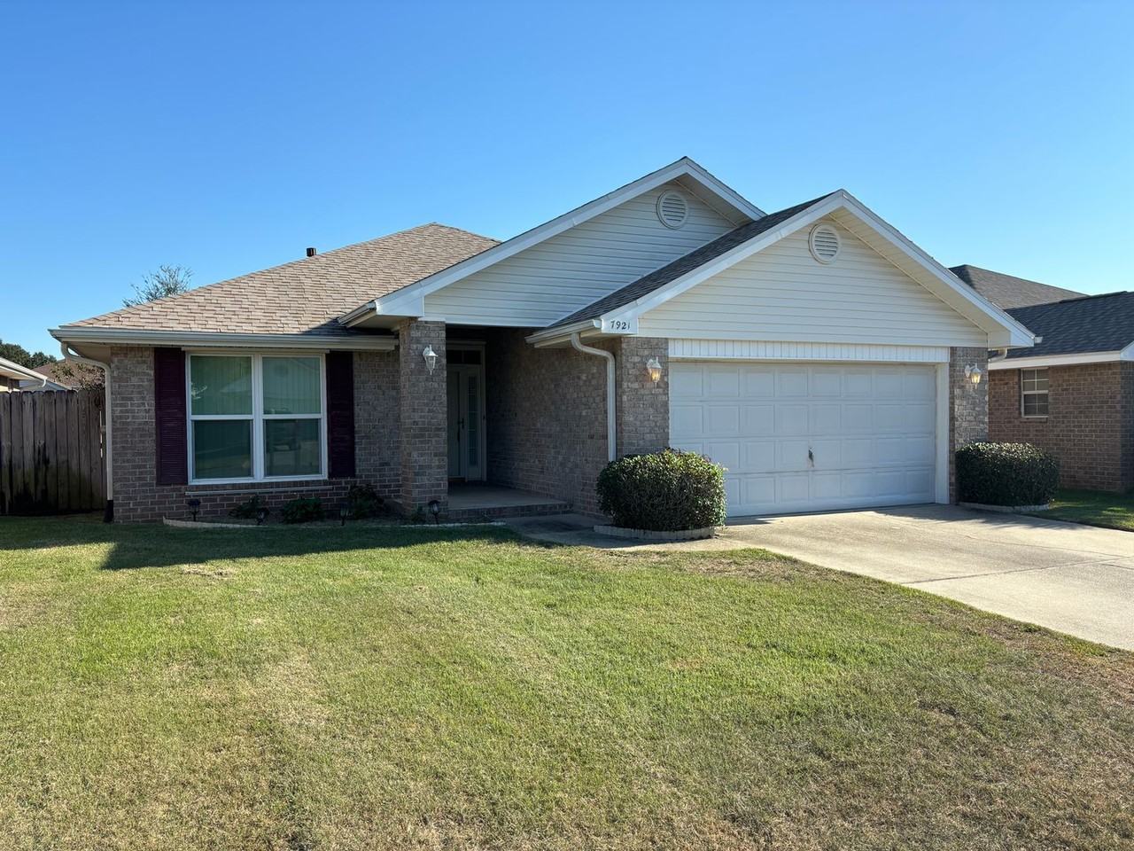Easy access to Navy Federal complex. Living room with cathedral ceiling, plant ledges & ceiling fan. Formal dining room plus kitchen/dining combination. Fully equipped kitchen with pantry. Split master bedroom with walk-in closet, double vanity, separate shower & walk-in jetted tub. Inside laundry. Tankless gas water heater. Privacy fenced backyard with covered porch. Yard building. Small pets considered with owner approval. No smokers. Increased security deposit may be required for roommates. Elementary School: Sherwood Middle School: Bellview High School: Pine Forest To get more information or to request a showing of this property please contact 850-347-6113.