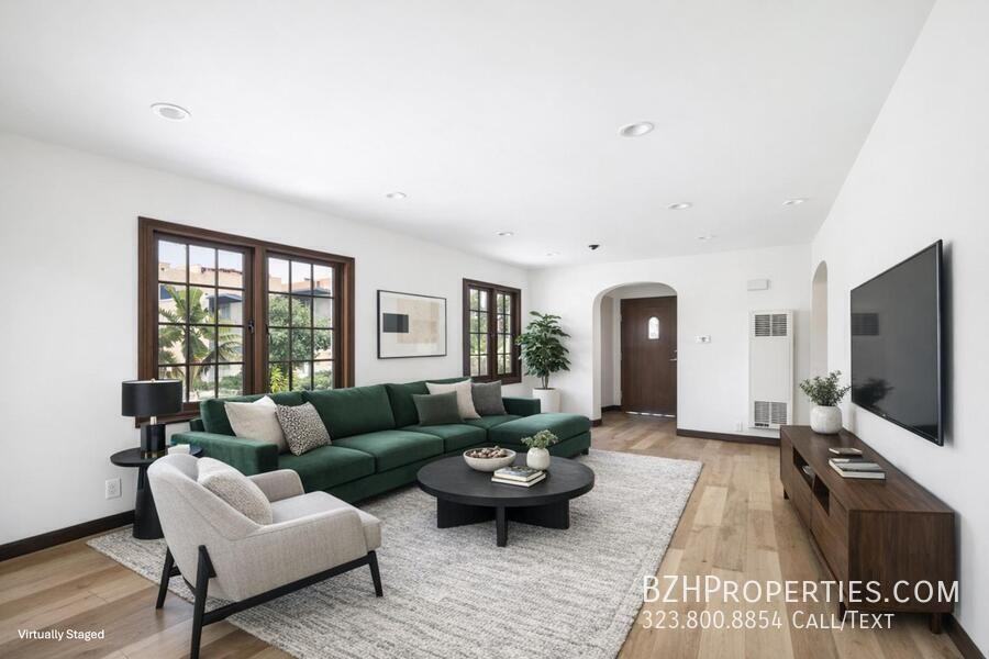 Bedrooms: 2 Bathrooms: 2 Floor: First Floor Tenant Pays: Electric, Gas Owner Pays: Water Parking: 1 Parking Spot Laundry: In Unit (stacked washer/dryer) Pets: OK Available: Now Features: • Spacious living room with natural light • Charming vintage‑style windows with dark wood trim • Updated kitchen with stainless steel appliances • Gas range with modern hood • In‑unit stacked washer and dryer • Two renovated bathrooms with sleek tile and glass showers • Large bedrooms with recessed lighting • Walk‑in closets • Wall A/C units • Beautiful light‑wood flooring throughout Welcome to this sun‑filled, beautifully refreshed 2-bedroom, 2-bath home in the heart of vibrant West Hollywood. Located just moments from Santa Monica Blvd and Fairfax, this first-floor residence features a spacious open living area with warm natural light pouring in through classic wood-framed windows that add charm and character. The updated kitchen offers white cabinetry, granite countertops, a gas range with an upgraded hood, stainless steel refrigerator and dishwasher, and great counter space perfect for cooking enthusiasts. Both bedrooms are generously sized with recessed lighting, wall A/C units, and walk-in closets for great storage. The bathrooms are tastefully renovated with tile showers, clean finishes, and a bright, modern feel. Enjoy the convenience of your own in-unit washer and dryer, pet‑friendly living, and a prime WEHO location. Step outside and you’re minutes from Whole Foods, Trader Joe’s, The Grove, Melrose shopping, Plummer Park, Runyon Canyon, cafés, restaurants, nightlife, and more. This home offers the perfect blend of classic character paired with modern upgrades in one of the most desirable neighborhoods in Los Angeles. To see all of our available rentals visit bzhproperties. com rentals If you need help scheduling a showing call or text 323.800.8854 ADDITIONAL TERMS: Pictures and descriptions may be of a different unit. Photos may be virtually staged. Square Footage is approximate. Showings may not be 1-on-1. Pricing and availability are subject to change at any time.