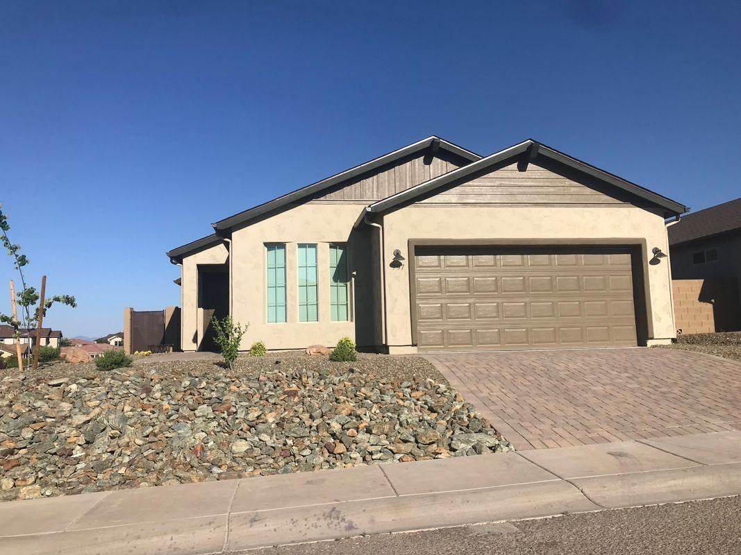 Modern 2 yr. old home on elevated corner lot with views in the desirable Mountain Gate Community. This well-designed floorplan with 3 bd, 2 bath features open concept living with efficient kitchen, dining area and great room with entertainment niche. Extensive ceramic tile flooring, bedrooms have carpeting. Large master bedroom has en-suite bath with double vanity, walk-in shower, walk-in closet, blinds and blackout drapes. Laundry room with washer, dryer, wash tub. Energy efficient HVAC and ventilation system, fire sprinklers, water softener, ceiling fans in all bedrooms. Insulated 2 car garage. Fenced back and side yard, covered paver patio. Access to gated Miner's Retreat Park with pickleball, basketball, BBQ area (see photos). Nearby Clarkdale and Old Town of Cottonwood offer small town charm, recreational opportunities and dining experiences. Close to nature trails, Verde River, historic Jerome and the Red Rocks of Sedona. Home is unfurnished! GARAGE IS 20X20. WILL NOT ACCOMMOD...