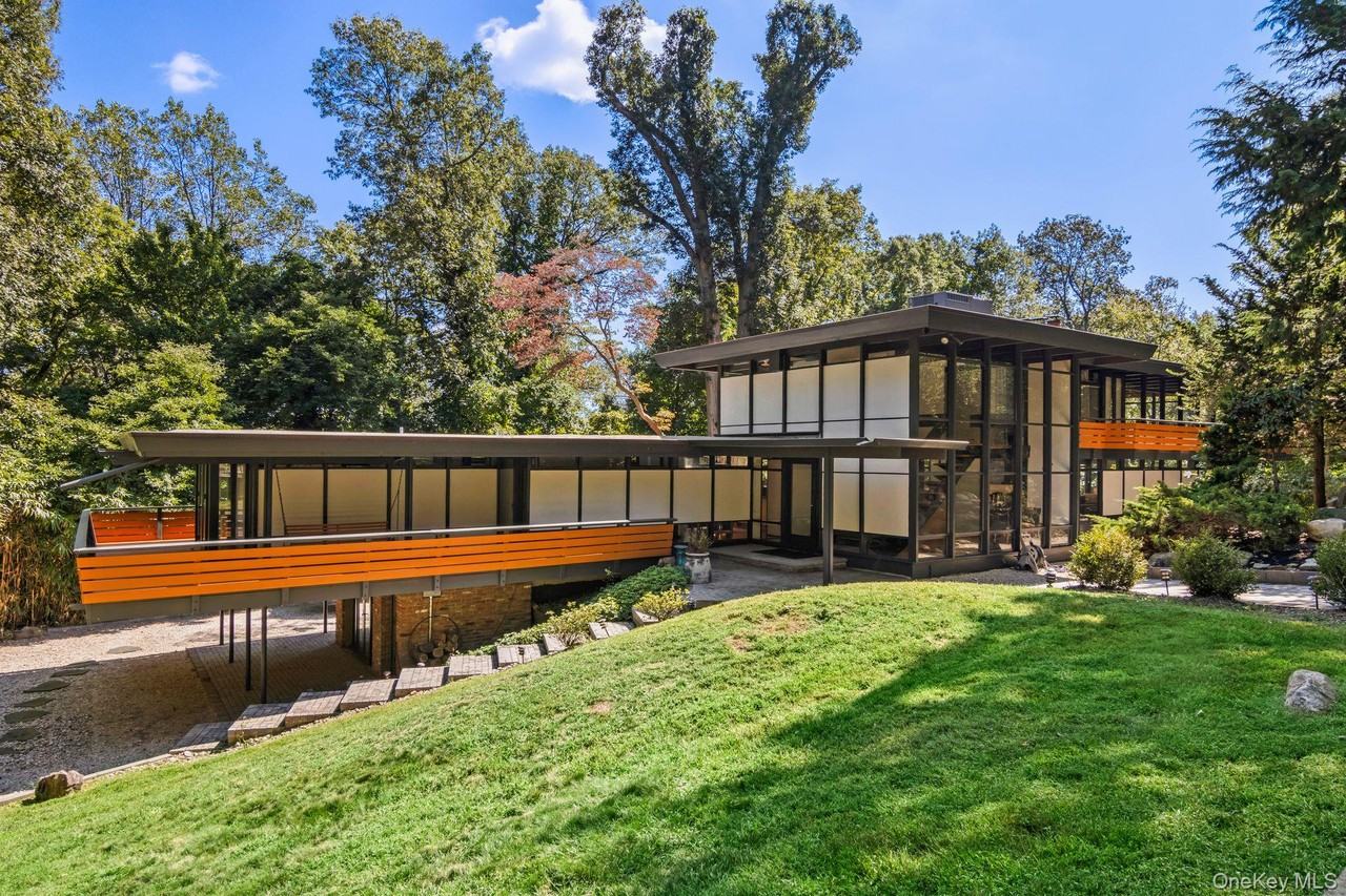 Unique Mid Century Modern Home On A Very Private Natural Setting With Partial Winter Water Views. This Exceptional Home Is Situated On 2 Acres On A Cul-De-Sac. Walls Of Glass Bring The Outside In. Spacious Living Room With Vaulted Ceiling And FIreplace. Primary Bedroom Suite With Den And Fireplace. Expansive Decking Overlooks A Koi Pond. Lower Level Is Above Grade With Media Room, Fourth Bedroom And Office.