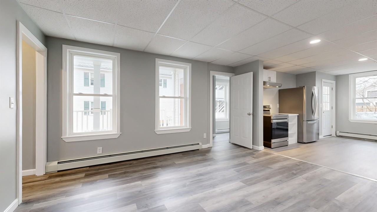 8 George St Building A Apt 7 Berwick, Maine 03901 This is a half duplex apartment, consisting of 3 floors, with 4-5 bedrooms and 2 full baths, 1,826 sq', a very large kitchen and livingroom. This is totally new construction, with vinyl wood plank flooring, recessed lighthting, stainless steel appliances and a warm, inviting color palette of greys and white. W/D hookup on 1st floor. 2 spots off street parking. Minutes walk to the NH border. NO Smoking, NO Dogs, Application Fee, Cats accepted with non refundable Pet Fee. We pay for Propane Heat ( forced hot water), Cold & Hot Water, Sewer, Trash Removal & Plowing. Tenant pays for Electric. The monthly rent for this exceptional 5-bedroom home is $3,500. To secure the apartment, a non-refundable retainer fee of $4,500 is required. Rest assured, this retainer payment will become your security deposit once the lease is signed, giving you peace of mind regarding the protection of your funds