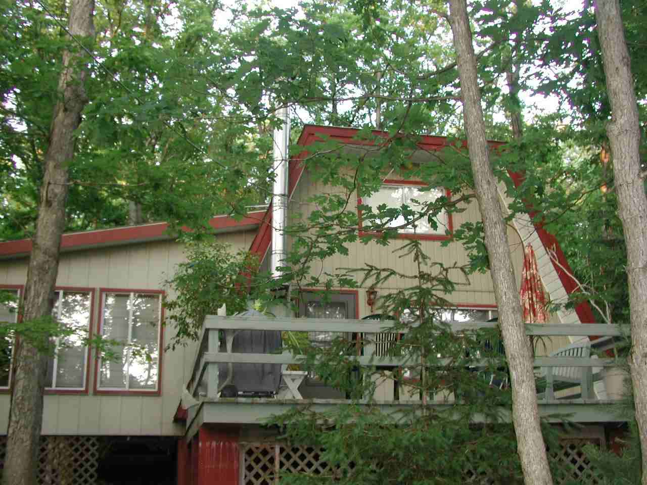 Charming A-frame cabin. Recently remodeled including wood floors, carpeted loft. Pleasant neighborhood, state lands close by, beautiful wooded lot in an established wooded development, large deck facing the water, small beach area, plenty of parking. Baseboard heat supplemented by a pellet stove. Small storage shed available, no garage. Handy types preferred as owner is not always immediately available and the relatively beautiful but remote area sometimes experiences power outages; a generator is supplied. Ideal for one or two persons. Sorry, no pets or smokers.