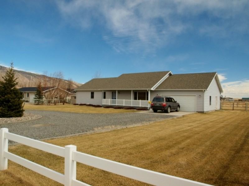 Enjoy the privacy of this newer country home with amazing views but just minutes to town! Single level with wrap-around drive, fully fenced yard with sprinkler system, and an over-sized 2-car garage. The home has a large living room, kitchen and dining area with vaulted ceilings, lots of natural light, and plenty of storage. Kitchen includes fridge, stove, dishwasher and disposal. Laundry room includes full-sized washer and dryer. The office/den is located right off the living room. Master bedroom is spacious with a walk-in closet and private bath. Forced air heat and a propane fireplace in the main living area. Owner pays for the water and to maintain the lawn in the spring/summer, which is a huge saving! A small dog may be negotiable.