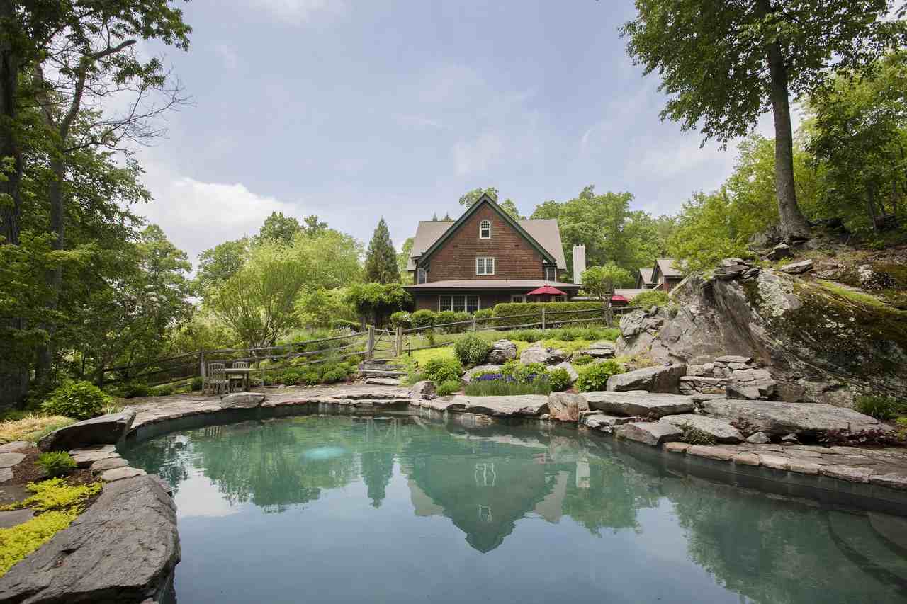 Available for June, July and/or August 2017 @ $21,000 per month. This grand Shingle-Style home is perfectly situated on 14+ acres. The views and privacy are extraordinary. The inspired design has been executed with fine craftsmanship, high quality materials and architectural details. The living room features a stone fireplace, beamed ceiling, columns and French doors opening to a bluestone terrace with a wisteria covered pergola. The formal dining room has a double height barrel ceiling and fireplace. The kitchen is equipped marble counters, copper farmer's sink, and 2 Miele dishwashers, Sub-Zero refrigerator and freezer, Wolf rangetop, 2 wall ovens, and warming drawer. The large pantry has room for an office. The kitchen opens to the gathering room with adjoining wet bar. Plus a Butler's pantry with sink. The east wing features a media/game room or guest quarters. It has extensive built-in bookcases, wet bar, beamed ceiling and full bath. On the second level are 3 bedrooms with en suite baths. The master bedroom features a walk-in closet and luxurious bath with a whirlpool soaking tub and separate shower. The laundry room is located on this level. On the third level are two bedrooms and a full bath. The Barn has recently been transformed into a gym and cedar-lined Russian sauna, with wood-burning heat as well as a cold water "plunge" shower. The 14+ acres are beautifully landscaped with perennial gardens, natural rock outcroppings, specimen plantings and a heated free-form Gunite pool with spa. The 3-car garage is heated.