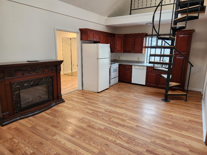 Property Id: 1674218 Freshly remodeled large cool Loft apartment, brand new floors, walls, all new remote control LED lighting and everything fully painted. Bathroom with working Jacuzzi tub. Cherry wood kitchen cabinets with granite countertops and double sink. One bedroom AND an extra room which is a 22 feet by 15 feet Loft accessed by cool spiral staircase, great for an office. Extremely convenient location to Parkway, downtown, the Airport and I 79. Living room with large closet and beautiful solid wood French doors leading into the kitchen/dining area. Skylights make the the dining/kitchen area sunny and bright. New bedroom measures 22 feet by 10.5 feet with a brand new large closet. Heavy decorative blinds throughout. Fully air conditioned with off street parking. Non smoking and no pets, credit and background check required, tenant pays electric, heat and a water allowance. Shared FREE laundry in the hallway only one other person uses this. One year Lease. Off street parking.