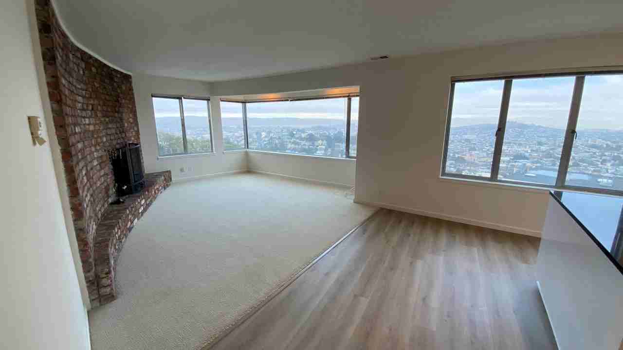 Light-filled, oversized, one bedroom corner apartment with jaw-dropping views from every window of downtown SF to the Bay and Oakland hills beyond. Fireplace with exposed brick, lots of closets and cabinets for storage. Updated kitchen with quartz countertops. - New hardwood laminate throughout - New carpet and pad in bedroom and living area - On-site property manager - On-site laundry - Muni 37 Corbett bus stops directly in front of the building - Water and garbage included in the rent - Rent controlled building