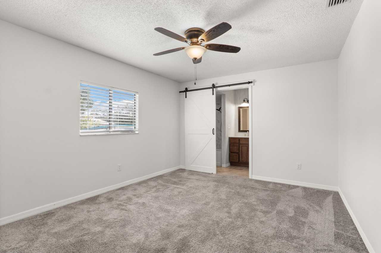 Welcome to this fantastic summer home! Listed is a 3 bedroom and 2 full bathroom home with a flex space which can be used as a home office or gym or theater. The home sits on a corner lot with lots of light and room for dogs to roam and explore along with a fenced in yard with two doors. The property has a pool and a patio for those hot summer days. The interior of the home has been completely painted and ready for the new tenants, this home also includes a washer and dryer.