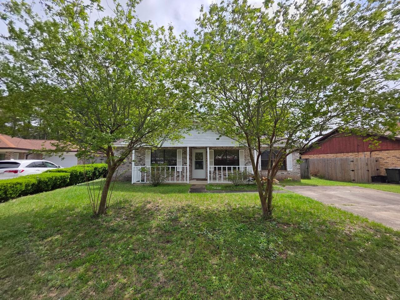 Welcome to this delightful 3-bedroom, 2-bathroom home, perfectly situated near the Naval Hospital, the Commissary, Corry Station and Pensacola State College West Campus. This all-electric residence boasts a functional yet charming kitchen/dining combo, featuring sleek stainless appliances, a spacious pantry, and ample cabinetry for all your cooking essentials. The open dining area creates a seamless flow to both the kitchen and the inviting living room, making it a wonderful space for gatherings and entertaining. Step into the generously sized living room, where a cozy fireplace awaits, offering warmth and ambiance for those chilly nights. The expansive master bedroom provides a tranquil retreat, complete with a separate vanity area, an oversized closet, and a convenient en-suite space for the tub and toilet, ensuring privacy and comfort. You’ll appreciate the convenience of an indoor laundry room, equipped with washer and dryer hookups, alongside additional storage space for all your necessities. The home features carpeting in the bedrooms, while the common areas showcase stylish tile and wood laminate flooring, blending elegance with practicality. Enjoy the lovely covered front porch, a perfect spot to sip your morning coffee, and an open backyard patio ideal for summer barbecues or quiet evenings under the stars. The privacy-fenced backyard guarantees seclusion and offering relaxation. Additionally, a substantial shed offers extra storage for outdoor equipment and hobbies. With ceiling fans thoughtfully placed throughout the home, comfort is prioritized year-round. Small pets may be considered upon owner approval with a $325 non-refundable pet fee per pet. No smokers, please. Roommate applicants must qualify individually if accepted.