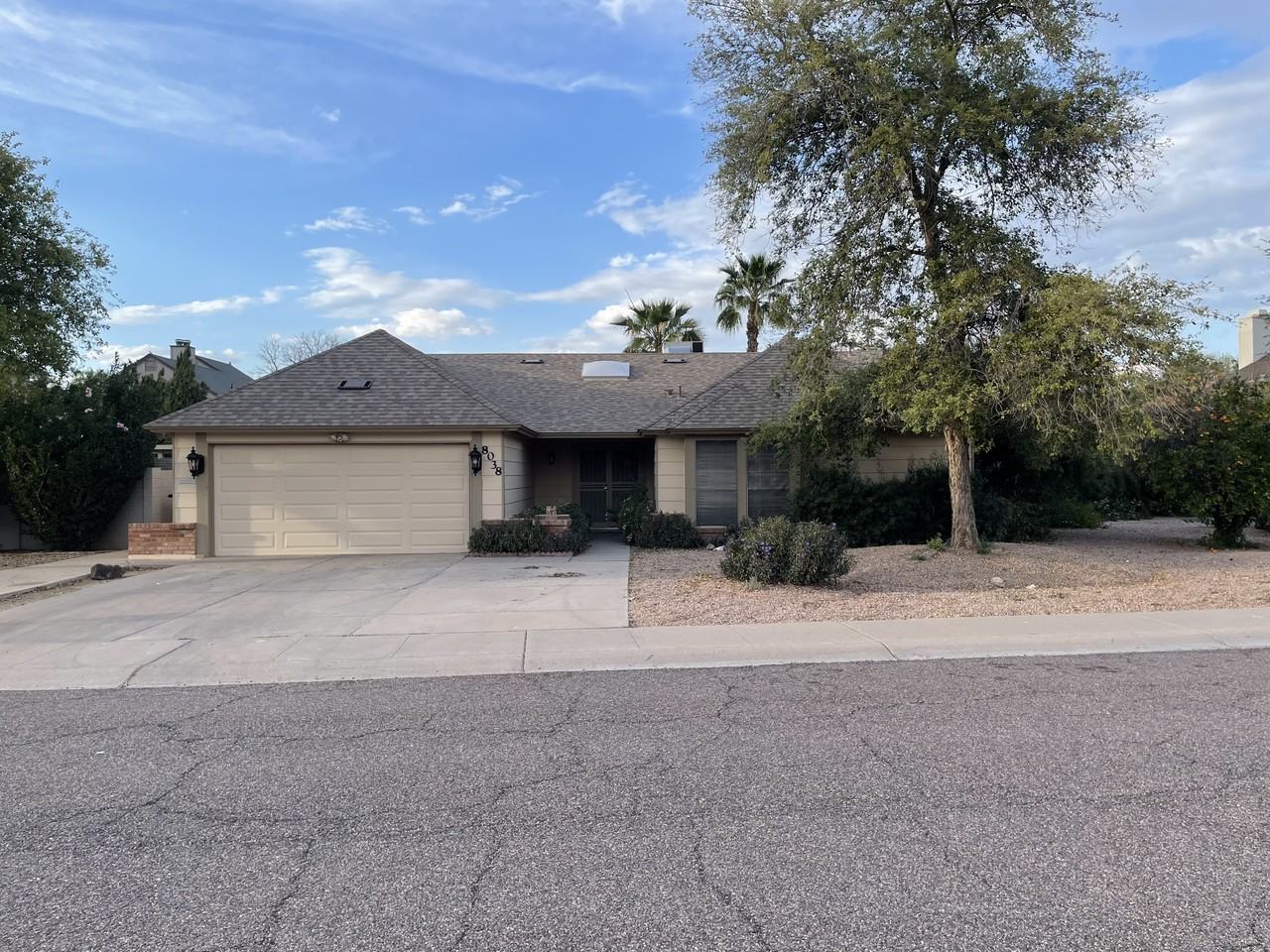 Single level home with a two car garage located in a quiet Scottsdale neighborhood, just minutes from the 101 Freeway and Indian Bend Road. Recent updates include fresh interior and exterior paint, stainless steel appliances, new tile flooring, and remote-controlled ceiling fans throughout. The home features a split floor plan with a spacious primary bedroom and walkin closets, as well as additional garage storage. The covered patio includes new can lighting. Conveniently situated near Chaparral Park, this property is move in ready.