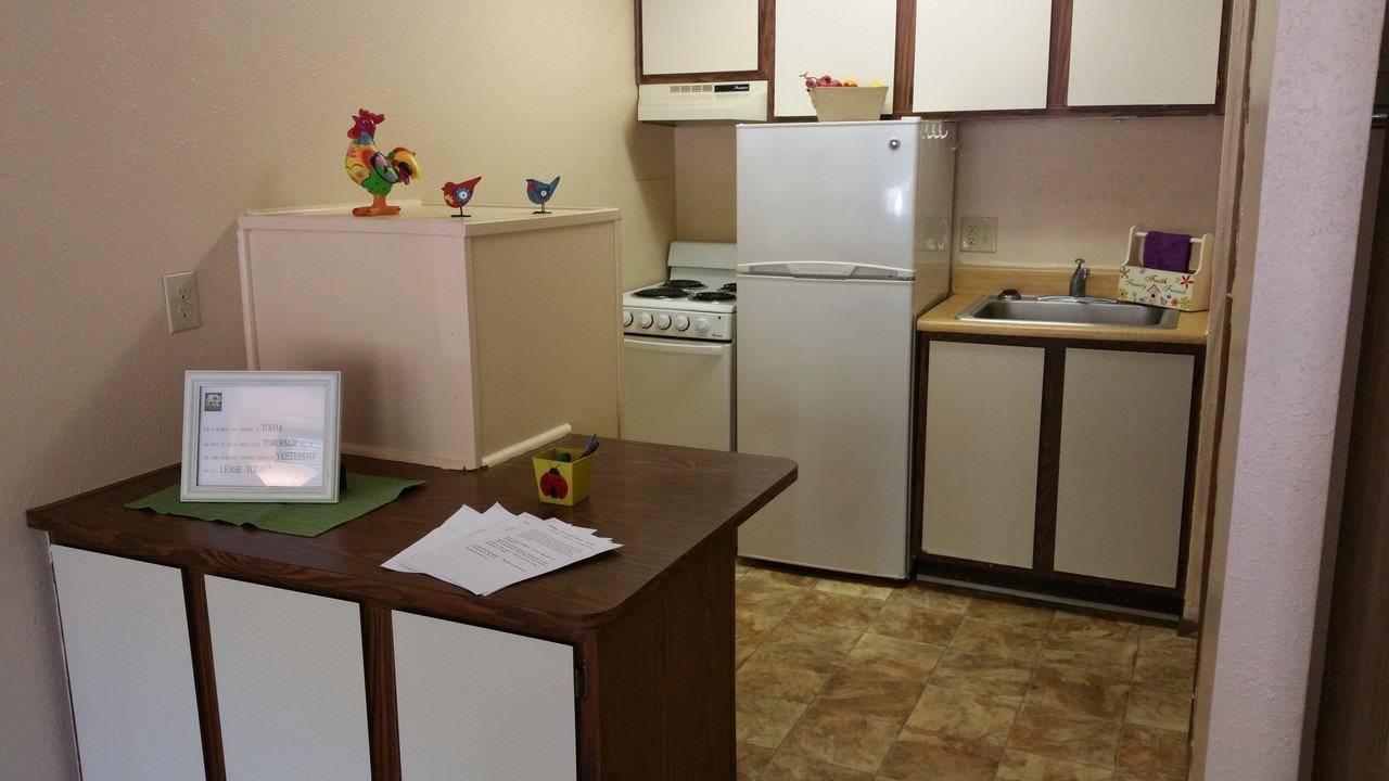 Semi-furnished studio; middle unit close to parking. This apartments unique features are built in murphy bed, dresser draw, and bookshelf unit.