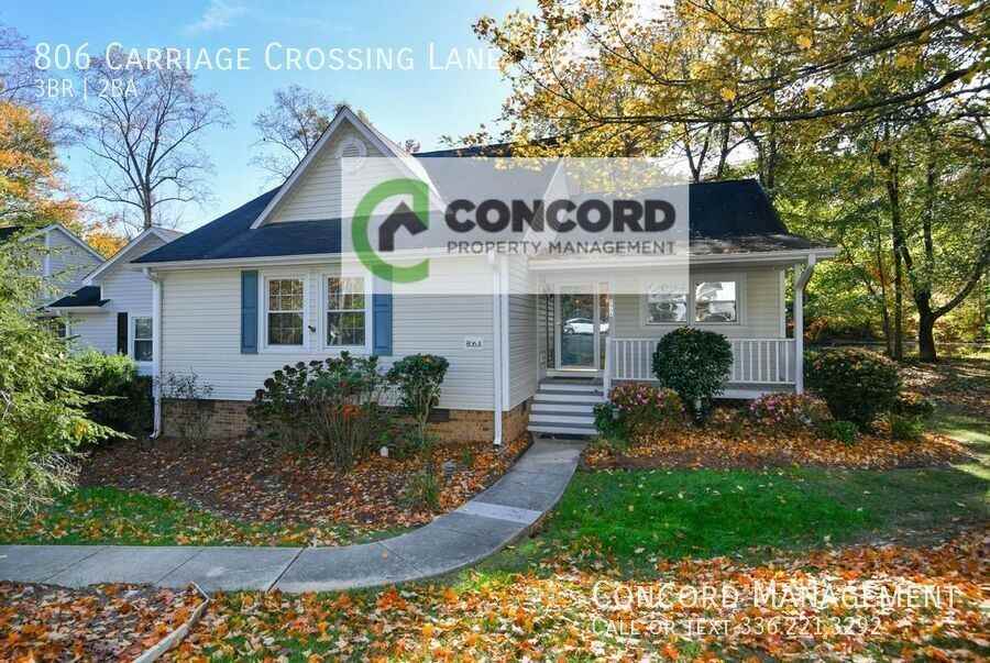 TO SCHEDULE A SELF SHOWING GO TO: https showmojo com l 890197d097 806-carriage-crossing-lane-greensboro-nc-27410?g=1 3 Bedroom 2 Bath - End Unit Townhome with Beautiful Pond Views and Private walking trails. This home features all one level living and is located on Friendly Ave., close to numerous shops, restaurants, and grocery stores. New Luxury Vinyl Plank flooring throughout the main living areas of the home (brand new flooring throughout the house). Living area has gas logs and opens to the dining area which leads to a four-season sunporch. The Kitchen comes with a stove, oven, fridge, microwave, dishwasher and double stainless steel sink. Charming breakfast room. New Carpet in the bedrooms. The main bedroom has an ample walk in closet. Other amenities include a full size washer and dryer, central A/C, central gas heat, gas hot water heater (brand new). There are two assigned parking places for this unit. HOA handles all garbage and recycling. (Tenant is responsible for utilities. Owner will provide a mower for the small enclosed portion of the yard in the back. HOA cares for the other much larger portion of the yard.) A MUST SEE! $1895/mo., $1700/dep AVAIL NOW NON SMOKING BUILDING Pet Policy: 35lbs & under fee start at $300.00. Breed Restrictions apply. SMALL DOG ONLY PET RENT $20.00 a month additional $5.00 per pet Restrictions apply You can check out a key Monday - Thursday 9am to 4pm & Friday 9am to 3pm. We hold a form of ID, as a key deposit. Were located at 510 Summit Ave. WE CHECK FOR THE FOLLOWING: ** STOP PLEASE READ BEFORE YOU APPLY Credit History, Rental History, Employment, Nationwide Eviction Search and Nationwide Criminal Background. Any Evictions Eviction Filings, Felonies, Felony Charges and Money Owed to Another Property in the last 7 years will EXCLUDE an applicant. Please Note **$85.00 Agency fee One-time fee non-refundable per adult ** AVOID RENTAL SCAMS: Concord Management is a licensed Real Estate Agency. Concord Management lists all of our properties with a Concord Management Watermark. We will NEVER ask for you to wire any monies or to supply your social security number to view any properties. If any money is requested, it will always be through Concord Managements website. Concord Management LLC Ph# 336-273-0598. **** Please note we do not keep up with sq footage ***** $1700/Dep. Avail Now $1895/Mo. 3 Bedroom 2 Bath End Unit Townhome With Beautiful Pond Views And Private Walking Trails. This Home Features All One Level Living And Is Located On Friendly Ave. And Grocery Stores. New Luxury Vinyl Plank Flooring Throughout The Main Living Areas Of The Home (Brand New Flooring Throughout The House). Living Area Has Gas Logs And Opens To The Dining Area Which Leads To A Four Season Sunporch. The Kitchen Comes With Central A/C Central Gas Heat Close To Numerous Shops Dishwasher And Double Stainless Steel Sink. Charming Breakfast Room. New Carpet In The Bedrooms. The Main Bedroom Has An Ample Walk In Closet. Other Amenities Include A Full Size Washer And Dryer Fridge Gas Hot Water Heater (Brand New). There Are Two Assigned Parking Places For This Unit. Hoa Handles All Garbage And Recycling. (Tenant Is Responsible For Utilities. Owner Will Provide A Mower For The Small Enclosed Portion Of The Yard In The Back. Hoa Care Oven Restaurants