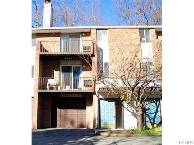 SLEEK AND INVITING SUNNY 2 BR UPPER UNIT CONDO WITH OPEN FLOOR PLAN. Entry foyer with stairway leading to the oversized living room featuring a wood burning Fireplace and sliders to a balcony with mountain views. Large eat-in kitchen with wood cabinetry spacious counters and view of outdoor lower level patio. Newer full bath with ceramic tile floor. Large bedrooms with roomy closets, open floor plan with plenty of light and great design flow. Oversized 1 car garage, spa-like private outdoor pool,tot lot. E-Z NYC commute.Close to Woodbury Commons. M-W Schools. Close to public transportation, easy NYC commute. Fireplace to receive glass doors.