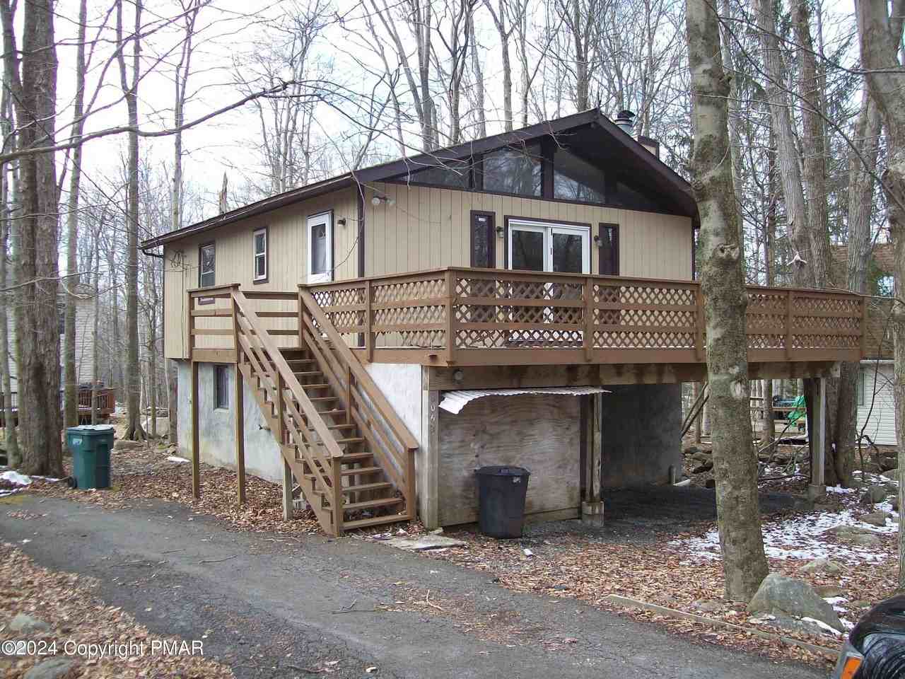 Property Status: Active 2 Bedroom 1 Bath Chalet House for RENT!!! Located in 24/7 Gated Amenity Filled Community!! Large unfinished basement with Washer/Dryer Hook up. Large Front Deck. House has been Freshly cleaned and Painted!! Pet considered on a case by case. No Grass to upkeep! Tenant pays: Electric, Heat, Water, Sewer, Snow removal, Cable. Property is Professionally Managed!! Copyright © 2026 Pocono Mountains Association of Realtors. All rights reserved. All information provided by the listing agent/broker is deemed reliable but is not guaranteed and should be independently verified.