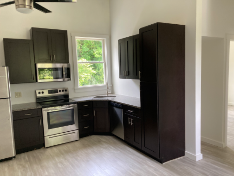 Property Id: 1119550 Apartment is 1 bedroom w/office((good size room, no closet) that could be used for bedroom. Great room concept with 12-foot ceilings, granite counters and stainless-steel appliances. First, last and security totaling $2800 up front to move in. NO dogs. Lawn care included. Completely renovated in 2020 with new appliances, cabinets, flooring, plumbing and electrical. Apartment is Unit 2 of 3 apartments. Off street parking for 2 cars, house (triplex) sits in back of a large lawn away from road.Water, septic ,and garbage removal included. Laundry hookups in unit. Background check, income verification please complete questionaire .