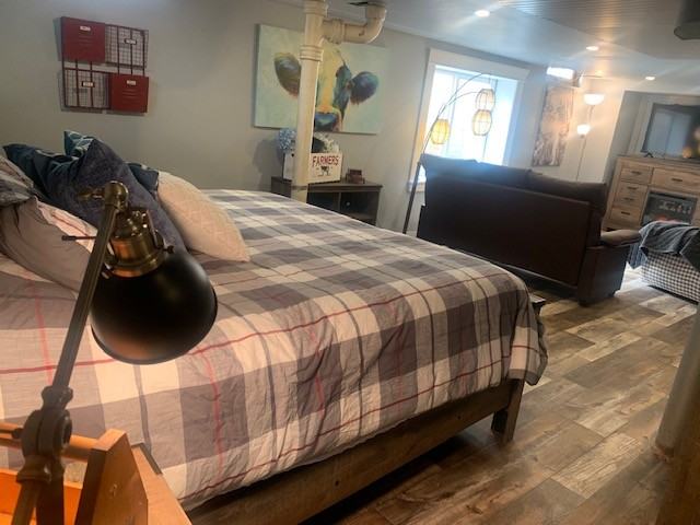 Ritchie’s downtown Farmhouse is located in walking distance from Appleton’s downtown. Recent updates to this unit since our virtual tour includes expanded kitchen countertop footprint with new quartz counters and a dishwasher. The living room area is quite spacious and the two upstairs bedrooms are cozier in size, each with queen beds. The lower-level addition features a built-in entertainment center with a third large TV, and a mini living room area. Two egress windows bring in natural light and a king sized bedroom set gives one guest a large extra bedroom and living space. This set up will work great if you have teens or several adults requiring separate spaces. This is not a tucked away end of cul-de-sac location, but rather a city street with modest traffic located close to downtown. This spot is great for guests wanting to be close to everything and may be less preferred for those with many very young children (no fenced in yard and local traffic). Private in unit laundry is located on the lower level. Stairs on this property include a few to front door, a few from side door main entrance, and a full set going from the main level to the lower level with the third bedroom. Off street parking available in driveway for multiple vehicles. Small one car garage more appropriate for economy car than a large truck (only smaller to mid-sized vehicles will fit in this garage). $2,800/month rent. $750 security deposit required. Please submit the form on this page or contact Elaina at 920-507-5683 to learn more. This property is managed by a responsible landlord using Avail landlord software.