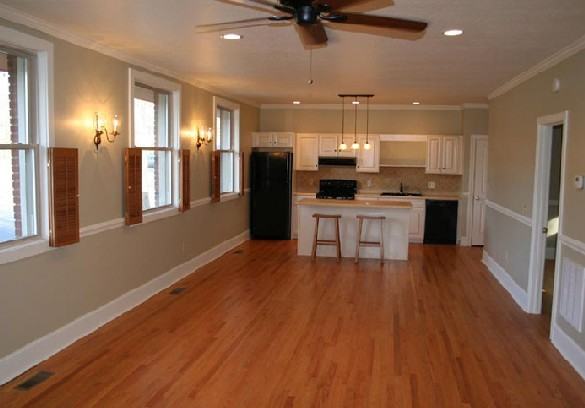 2 BEDROOMS / 1 BATH, 1,100+/- Square Feet, Unfurnished Located in center of historic Waynesville, NC, one block to Haywood County Public Library Adjacent to Main Street, easy stroll to shops, restaurants and galleries 30 minute drive to Asheville, Biltmore Estate, Grove Park Inn, world-class cafes and restaurants Room Dimensions: Great Room: 36 x 14 (Living / Dining / Kitchen) Bedrooms: 15 x 11.5 and 13 x 11.5 Entrance Hallway: 19 x 6 Utility Room: 7 x 5.5 Bathroom: 9.5 x 5 Recent Build-out Includes: New HVAC system--efficient heat pump with central a/c New plumbing and electric Custom kitchen cabinets / center island Recessed lighting Front load Samsung washer & dryer in separate utility room Cable or satellite ready Hardwood floors throughout In-line water filter Large windows and 9 ft ceilings provide airy, open atmosphere Private wood deck affords mountain view Ample parking Landscaped entry, large back yard, rock gardens, wildflowers and herbs Plenty of room to garden if you are so inclined NOTE: NO SMOKERS / SMOKING TO MOVE IN: $850.00 per month, plus one month security Tenant pays electric (separately metered), plus small amount for garbage pickup (included on electric bill) / Water and sewer paid by Landlord Application/references required