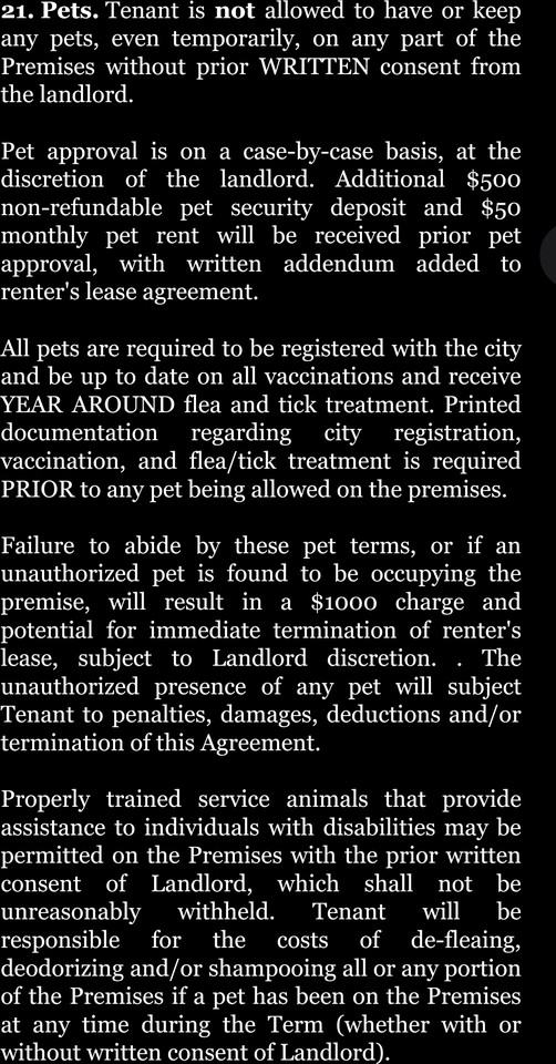 Contact for more information on pet policy.