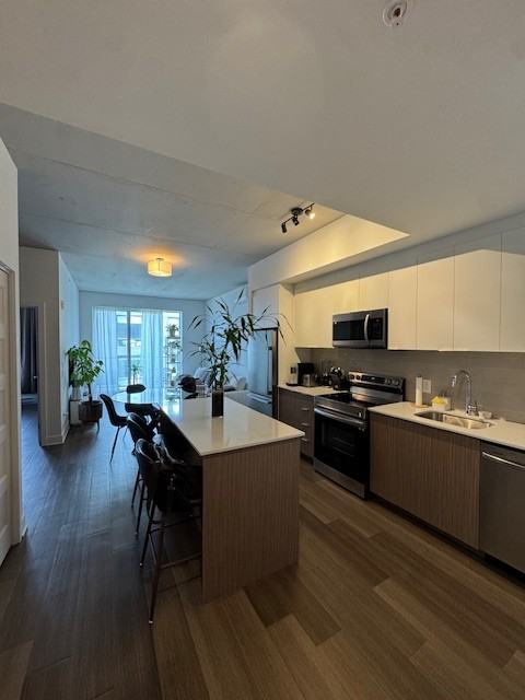 **Lease transfer - Luxurious 3 1/2 + den apartment for rent as of June 1, 2025** - ONE MONTH FREE Located on the top floor of the Carlyle, this luxury apartment is a rarity in Town of Mount Royal. Its eastern exposure lets you take full advantage of the morning sun, bathing the space in natural light. What's more, being located on the Plymouth Avenue side of the street, you benefit from a quieter environment, away from the noise and pollution of the highway. The apartment is in excellent condition, having been maintained to the highest living standards thanks to meticulous maintenance, including a professional cleaning service every two weeks. Custom curtains already installed in the living room and bedroom add a touch of comfort and elegance and are included. The exclusive configuration with central kitchen island (a privilege reserved for only 10% of the project's units) offers a modern, functional experience. Rent: $1990 per month Appliances included: - Stove, dishwasher, refrigerator, microwave, hood - Washer and dryer - Wall-mounted air conditioning and central air exchanger - All light fixtures You'll not only be in your own home, but in a refined, upscale living environment. Carlyle residents have access to a host of carefully designed common areas: 🏋️‍♂️ Modern gym with changing rooms 🏊 Indoor pool with private showers and loungers worthy of the finest hotels 📊 Convenient business center for telecommuting 🌳 Green spaces for relaxation Its privileged location puts you just steps away from the new ROYALMOUNT shopping center, an exclusive destination offering luxury boutiques, refined restaurants and trendy cultural spaces. ✨ A unique opportunity for those seeking a prestigious, modern and comfortable home in the sumptuous Town of Mount Royal. Don't miss this opportunity, and don't hesitate to contact us for a visit!