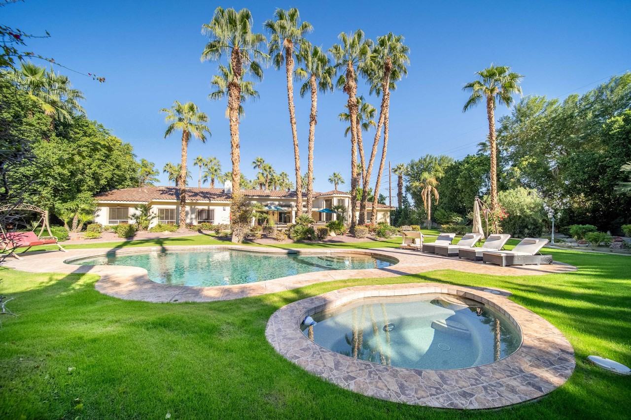 Casa Monte Grande is a private luxury estate inside the gated Estates at La Quinta, set on an expansive, beautifully landscaped property that feels more like a boutique resort than a single home. Inside, the spaces are generous and thoughtfully designed: a grand foyer with iron double doors and a chandelier, a designer blue-and-gold chef’s kitchen, a comfortable great room that opens to the pool, a dedicated indoor bar, and a cozy theater lounge with reclining leather seats. The primary suite feels like its own apartment, with a king bed, a fireplace, and a full sitting area with sofas, plus direct access to the patio. Every bedroom has its own ensuite bathroom and walk-in closet, and one wing of the home functions as a flexible family suite with multiple beds. Outside, Casa Monte Grande unfolds into a true oasis with a freeform pool and spa, large lawns, mature palms, a circular fire pit with built-in seating, a BBQ grill and shaded patio lounge for outdoor meals, and a unique wooden deck perched above a tranquil pond and waterfall. It’s a place designed for groups who want space to spread out, gather, relax, and genuinely enjoy being at home in the desert. *Rental rates vary by month, so please contact us for availability and pricing. Security Deposit: A refundable security deposit is required and will be collected prior to your stay. Full details provided upon booking. For long-term rentals, a California lease must be signed. Each rental includes utility caps for electricity, water, and gas, and the guest is responsible for any overages. The signing of the lease agreement must occur within 21 days of booking, provided the check-in date is more than 30 days away. If the check-in date is less than 30 days from the booking date, the lease agreement must be signed within 5 days of booking. Pets: Pets are subject to approval. Pet cleaning fees apply and vary depending on the breed and size. *Work vehicles are not permitted to be parked inside the community. The space From the moment you step through the wrought-iron double doors, Casa Monte Grande feels open and welcoming. The entry is bright, with high ceilings, tall windows, and a chandelier that sets a quietly grand tone. Straight ahead, the great room draws you in with deep blue velvet sofas, a stone accent wall, a fireplace with a mounted TV above, and wide views of the backyard. The room flows naturally into the kitchen and dining areas, making it easy for everyone to be together without feeling crowded. The kitchen is one of the showpieces of the home. It features an oversized island with waterfall-style countertops and velvet bar stools, white cabinetry with gold hardware, double ovens, a gas cooktop, and a large built-in refrigerator. Two mosaic chandeliers hang over the island, giving the space a warm evening glow. Just off the kitchen, a glass-wrapped breakfast area looks out onto the palms and gardens, while a formal dining area nearby seats a larger group comfortably and keeps meals connected to the heart of the home. The house includes several spaces designed purely for comfort and entertainment. One wing holds a dedicated theater lounge with four leather recliners arranged before a large TV and modern fireplace — ideal for movie nights or quiet downtime. Another room serves as a full indoor bar lounge, complete with custom shelving, bar seating, and tall windows that make it bright during the day and atmospheric at night. A foosball table adds a casual, fun touch without ..