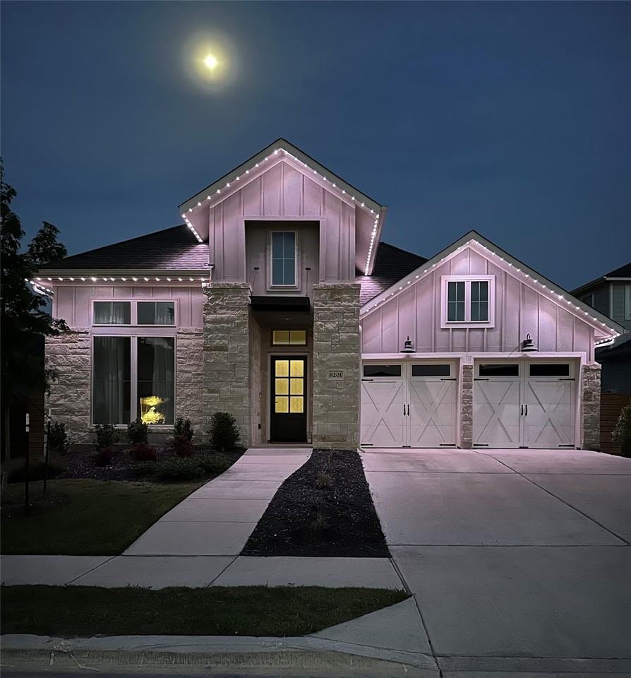 Gorgeous single-story house built by Perry Homes in Easton Park. An inviting open floor plan welcomes you from the dining room directly into the family room, and the open kitchen floor plan has ample counter space and an island. This home offers 3 bedrooms, a library with French doors and two walls of windows, 2 bathrooms, a spacious laundry room with built-in shelves, and a mud area next to the two-car garage. The primary bedroom has three large windows facing the backyard, with its bathroom having two vanities, corner garden tub, a large glass-enclosed shower, and large walk-in closet. Gemstone lights illuminate the front of the house and show off the exterior features at night. Covered backyard patio with manicured lawn adds to overall polish.