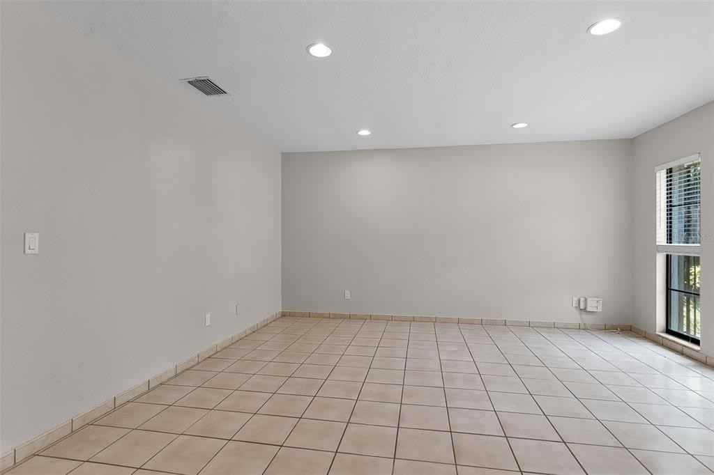 This spacious 4-bedroom, 2-bath home offers comfort, functionality, and stunning water views in a peaceful setting located on an oversized lot. A bright front living area greets you upon entry, with a versatile 4th bedroom or office featuring French doors. Continue into the main living room with wood beam accents, built-in shelving flanking an electric fireplace, and sliding doors to a screened patio—perfect for relaxing after a long day. The L-shaped kitchen boasts stainless steel appliances, a pantry, and a breakfast nook, with water views from the sink to make meal prep a pleasure. All bedrooms are on the left side of the home, with Bedrooms 2 and 3 across from a full bath with a walk-in shower. The primary suite at the back offers serene water views, a spacious vanity, and a shower/tub combo. Tile flooring runs through the main living areas, with vinyl in the bedrooms. The garage houses the laundry area with washer/dryer, a 2-car parking space, and a water softener system - tenant will be responsible for maintaining salt levels. It's ready for you to move in and start enjoying the lifestyle!