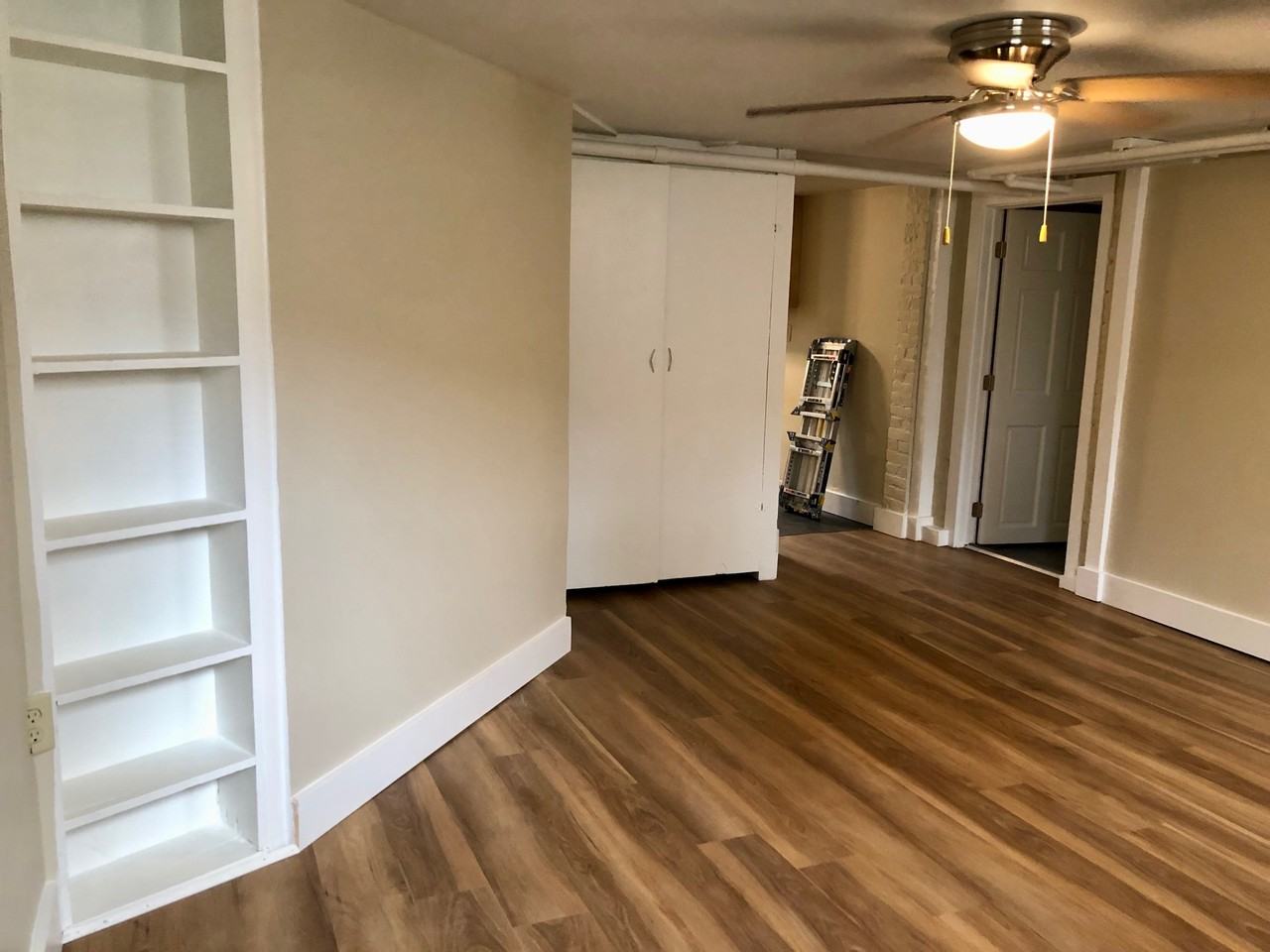 Radiator heat included! Newly remodeled 1 bedroom, 1 bathroom apartment. This unit stays cool in the summer and warm in the winter without using any electricity, however, window AC units are provided anyways! This unit is a full remodel with new floors, ceiling fans, an entirely new kitchen with dishwasher, and new bathroom. Living room has built-in shelves and a storage closet. Unit has a private entrance. Location has coin laundry and parking lot in rear. Located just half a block from the Dana-Thomas House and a 5 minute walk to the shops and restaurants downtown! Tenant pays the electric bill. Owner provides radiator heat, water/sewer, trash, a window AC unit, and maintenance services. Up to 2 cats are okay with monthly pet fee, no dogs please! Non-smoking building. 1 year lease minimum.